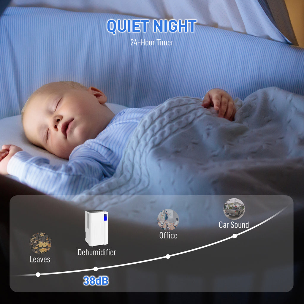 Wave goodbye to damp and hello to fresh with the electric dehumidifier for home! Effortlessly removing 12L of moisture in areas up to 25m², this air dehumidifier is your go-to for combatting humidity at home. Featuring a 2L tank with a handy drainage hose, LED humidity display and whisper-quiet operation at 38dB, enjoy a drier, comfier space in your bedroom or any room.