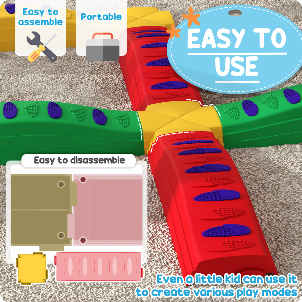 Discover the joy of movement with the balance beam for kids! Designed to enhance balance skills, this floor balance beam can be configured in various shapes and features an undulating surface for dynamic play. Suitable for ages 3-8, its soft TPE material with convex dots ensures comfort and safety for little feet, indoors or out.