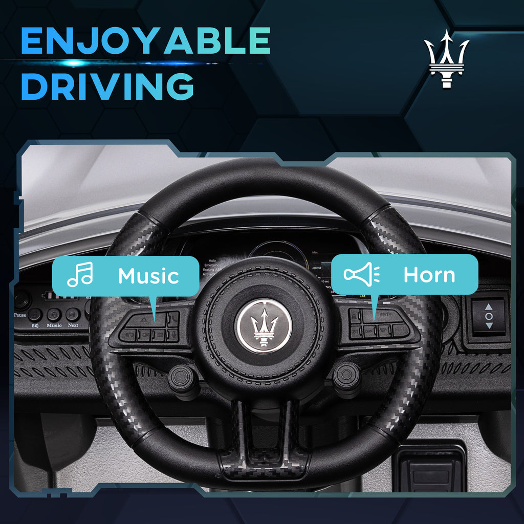 Rev up the fun with the Maserati Gran Turismo Folgore! This licensed car for kids to drive features powerful dual 12 motors and a standard power device for up to 50 minutes of playtime. Choose from parent remote control or manual drive by the kids, ensuring safety with a smooth start and safety belt. Suitable for adventurers aged 3-5 years, it's a fantastic kids ride-on car with remote control!