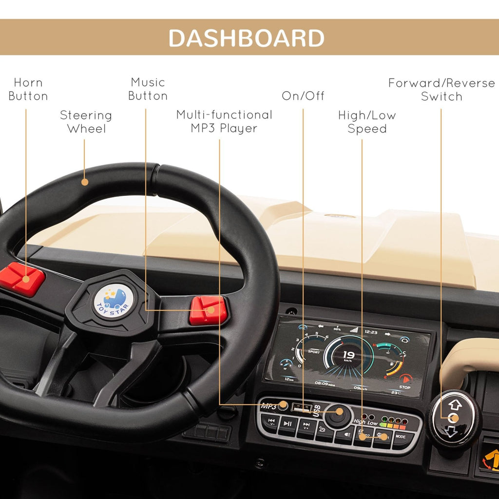 With this electric ride-on, kids will feel all the joys of driving. It's a two-seater, so they can bring friends along and enjoy the fun together. Capable of going up to 6km/h, this kids ride on utv features a music player, LED headlights and a horn – just like the real thing. The remote control lets parents get involved and control the electric UTV, so no people misses out on the enjoyment.