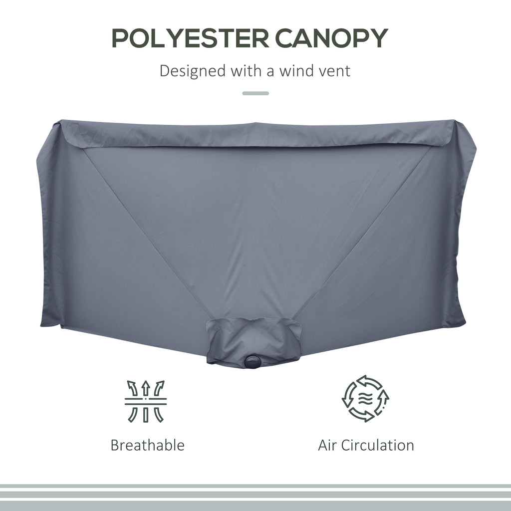 2.3m Half Parasol Semi Round Umbrella with Metal Frame and Crank Handle Grey