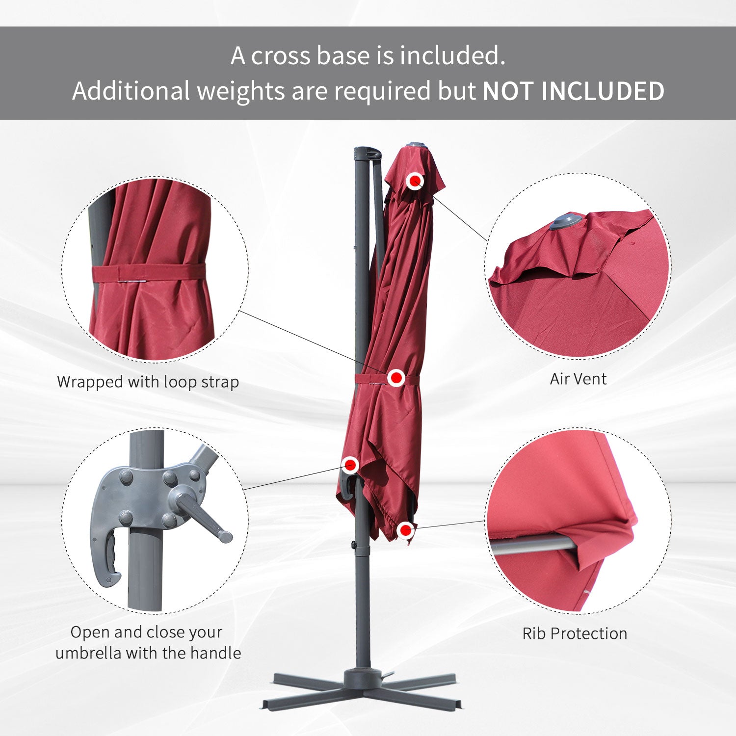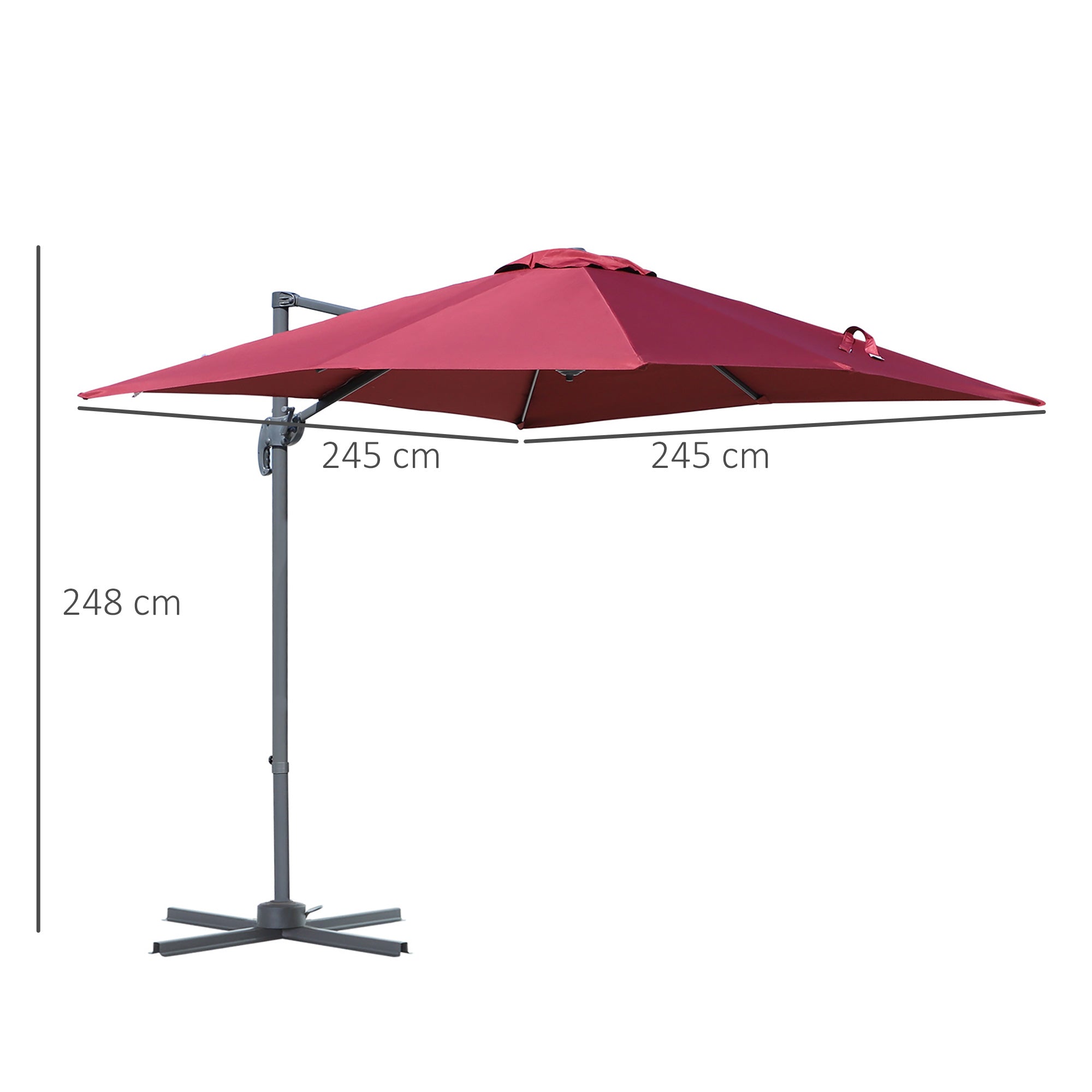 Ensure you keep yourself protected enjoying the sun, thanks to this cantilever parasol with base included. A powder coated aluminium pole means a strong, supportive core. The polyester fabric shade keeps you protected from UV rays. It's adjustable to three positions and has a 360° movement: set it to any position you want - the must-have partner for all-day relaxing.