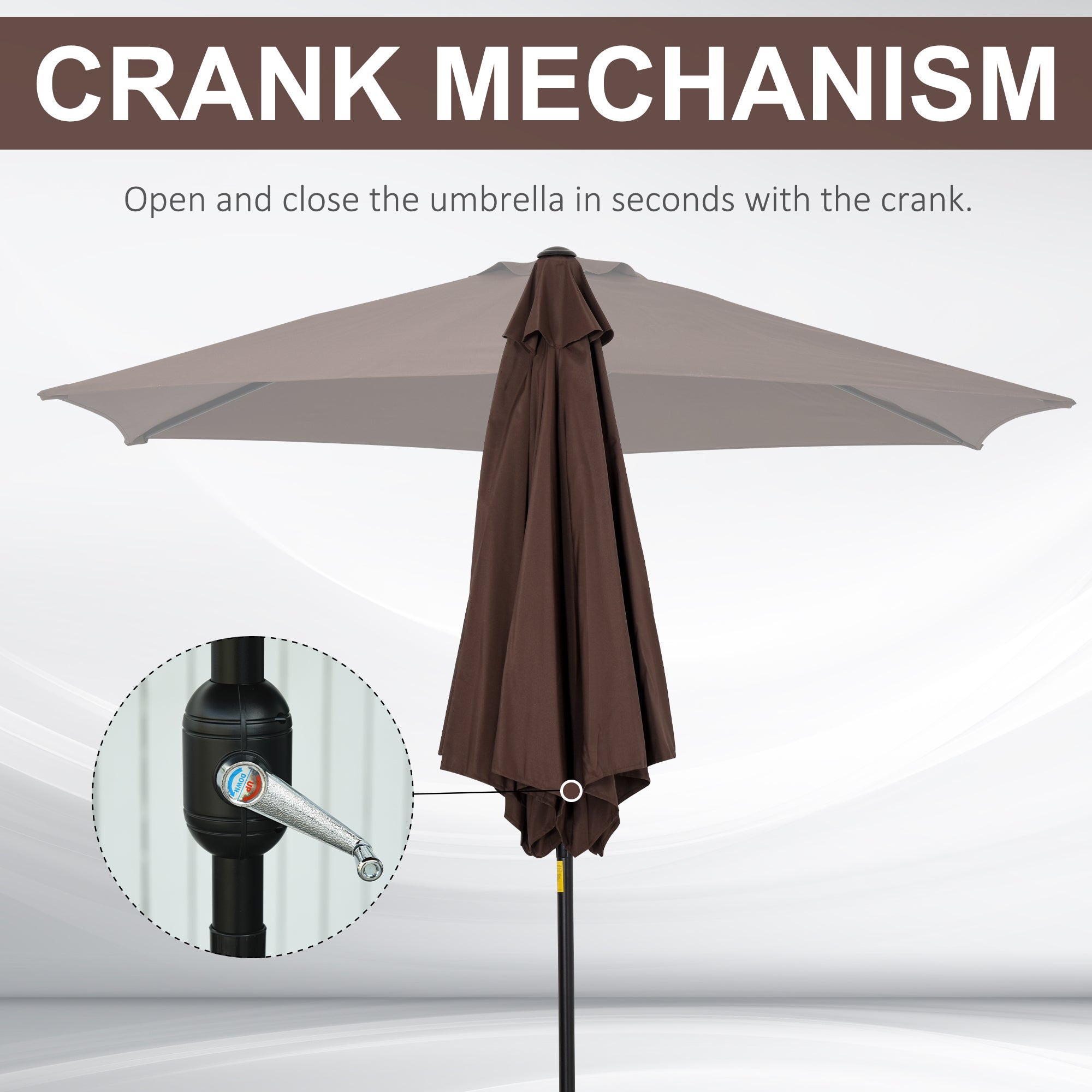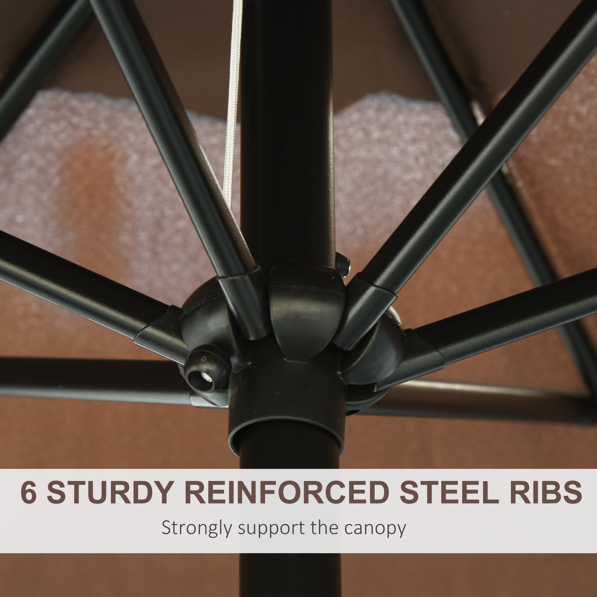 The large garden umbrella is ideal for enjoying the shade on sunny days that can tilt for better protection. Constructed with a metal frame and the shade is made of polyester fabric. It features classic colour and sleek lines and is designed to maximise the shade capability. Suitable for patio and garden, and can be used with existing garden furniture. The metal structure and 180g/㎡ polyester fabric give optimum support and stable features.