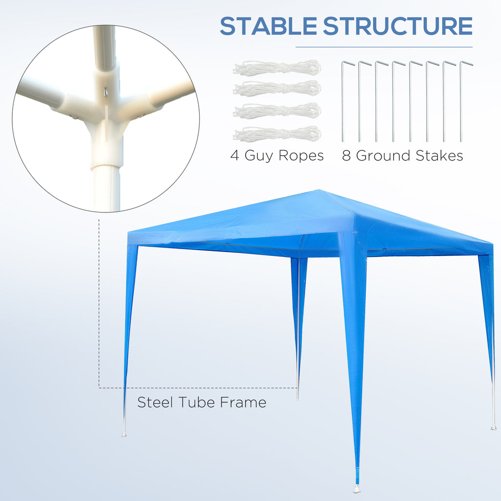 This gazebo is a great way to create a shaded place when you require it. Our garden tents and gazebos are made up of a powder-coated metal frame with a PE cloth canopy cover. It is ideal for use in the garden or parks and comes complete with tie ropes and ground anchors so that the small marquee can be secured firmly to the ground.