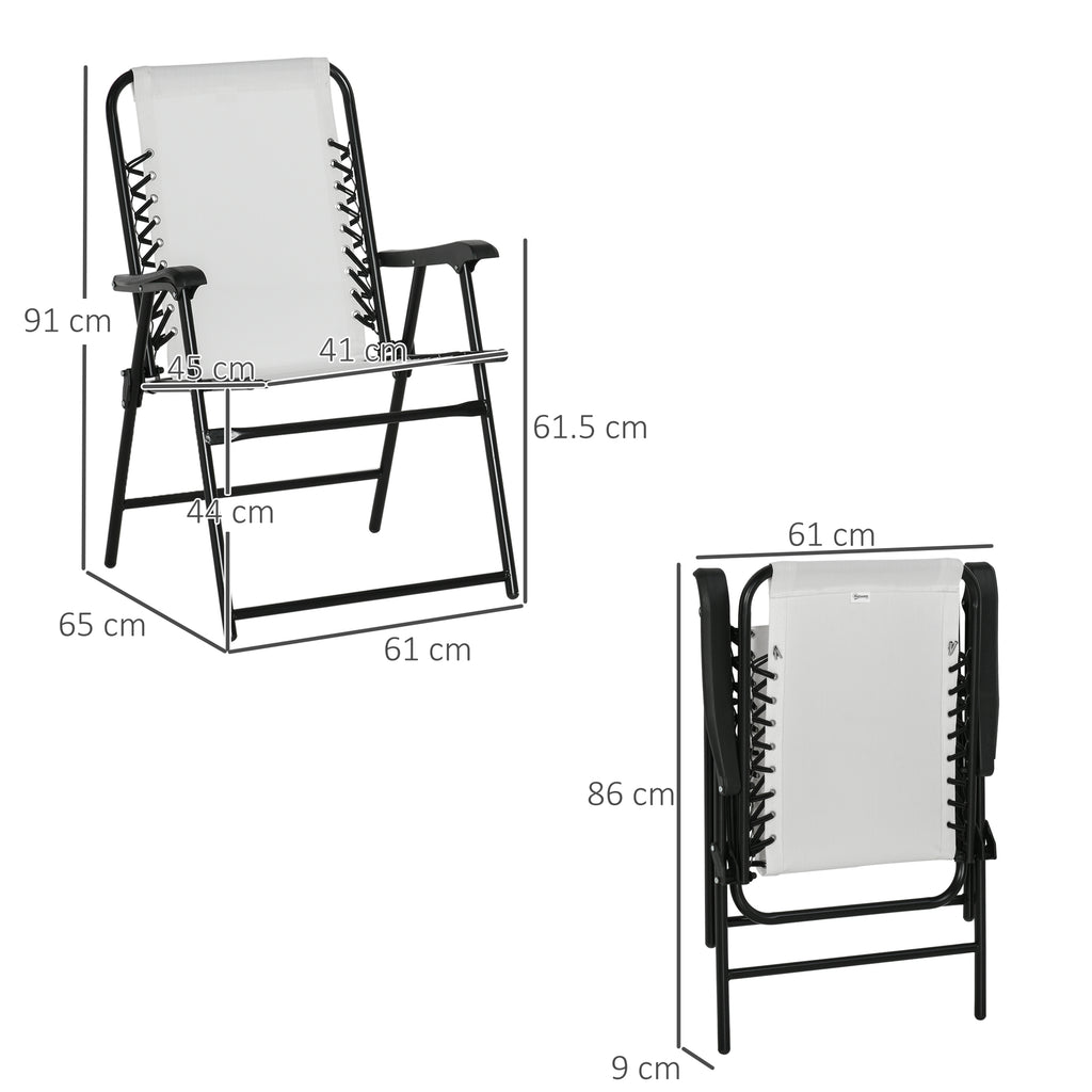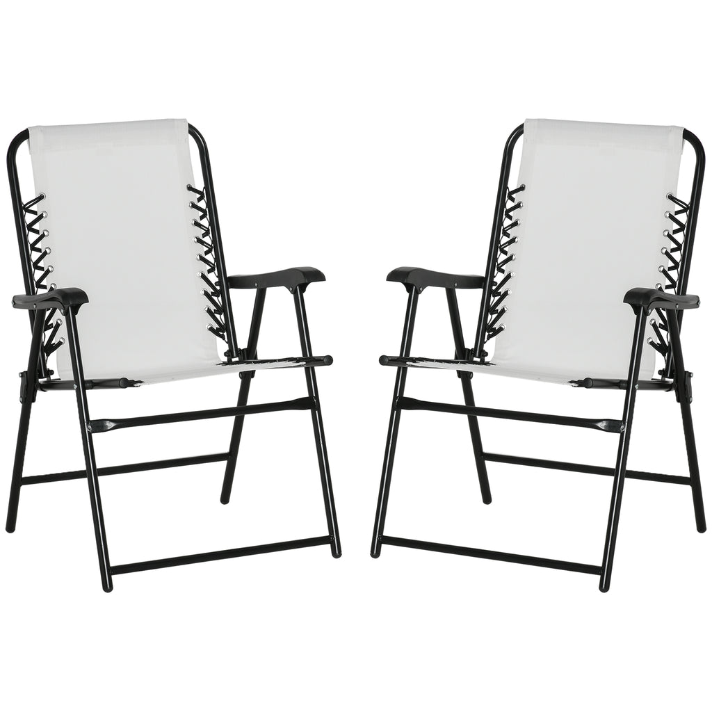 This two-piece outdoor folding chair set is ideal for any gathering, both indoor and outdoor. The chairs are made from heavy-duty steel, with powder-coated for extra strength. Mesh fabric seat holds your body comfortably, the high back and armrests give you support. Lightweight and foldable design is easy to carry and store. Spend no time to assemble and enjoy.
