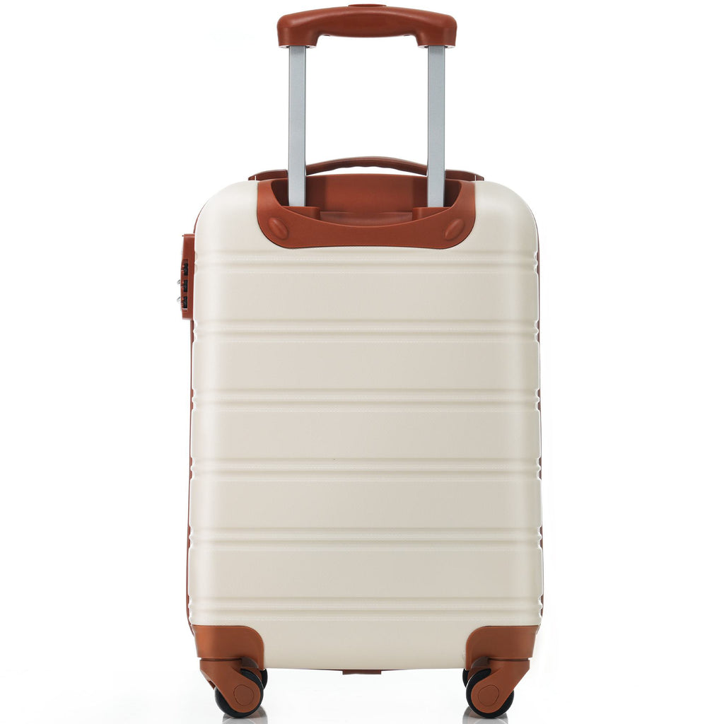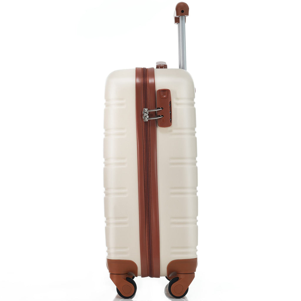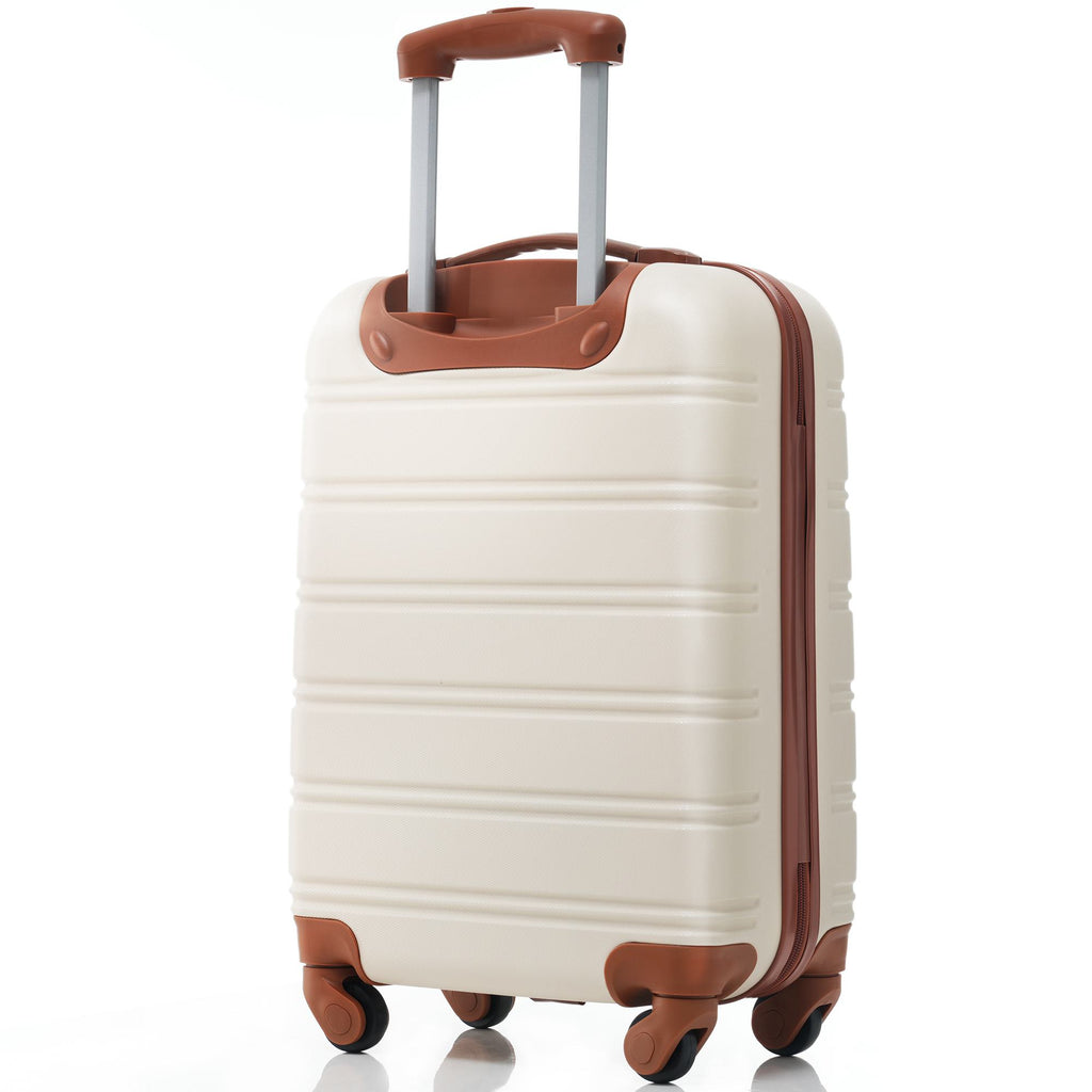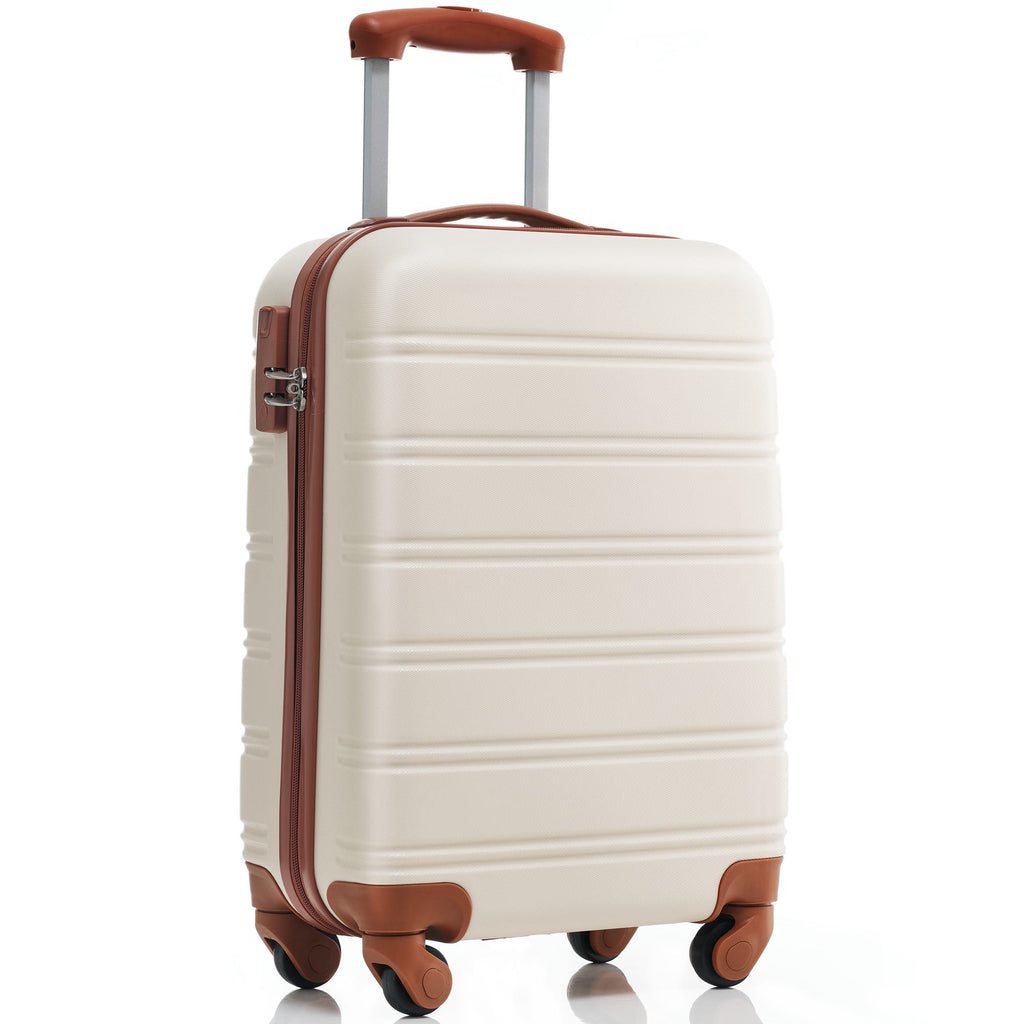 20" 4-Wheel ABS Hard Shell Travel Trolley Suitcase with Adjustable Handle, Luggage with Secure Lock, 35L x 23W x 57H cm, Brown+White