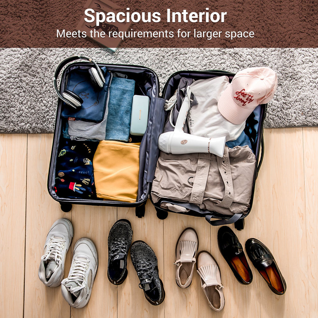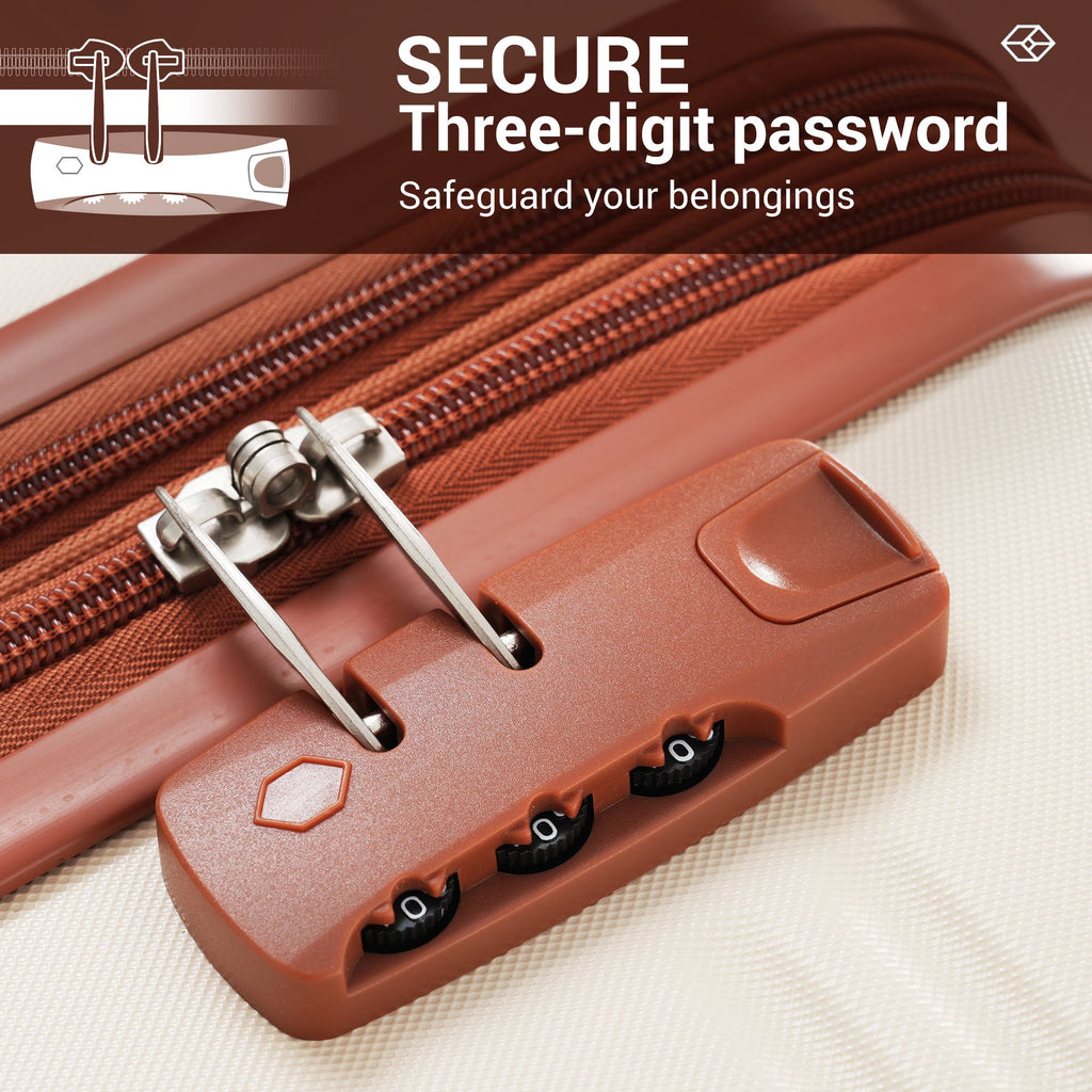 Travel in style with this ABS hard shell travel trolley suitcase set, featuring a chic ivory and brown design. The set includes three sizes: 20" (35L x 23W x 57H cm), 24" (45L x 28W x 69H cm), and 28" (52L x 32W x 78H cm), ensuring you have the perfect luggage for any trip. Equipped with silent universal wheels and an adjustable telescoping handle, this suitcase glides smoothly and is easy to manoeuvre. For added security, it comes with a three-digit combination lock, making it ideal for keeping your belongings safe on the go.