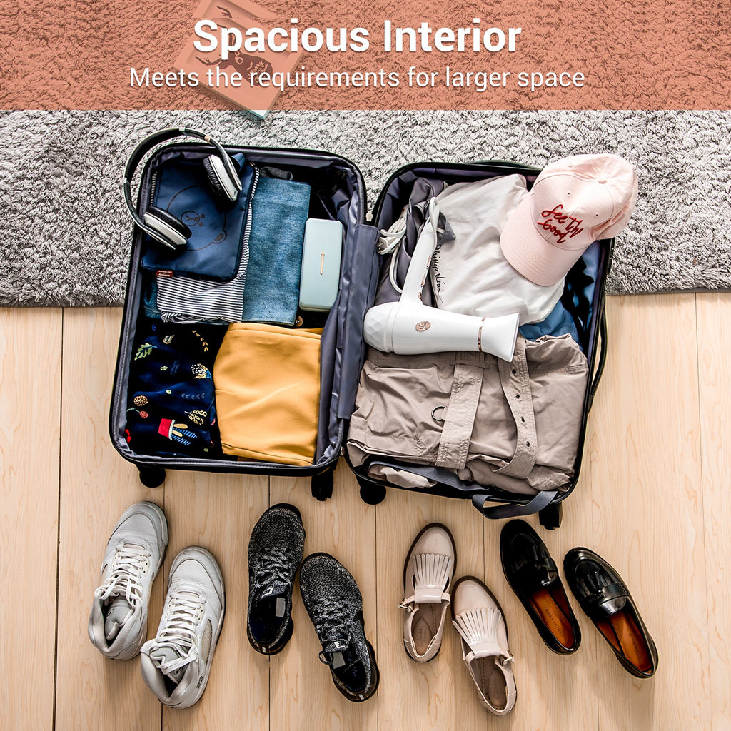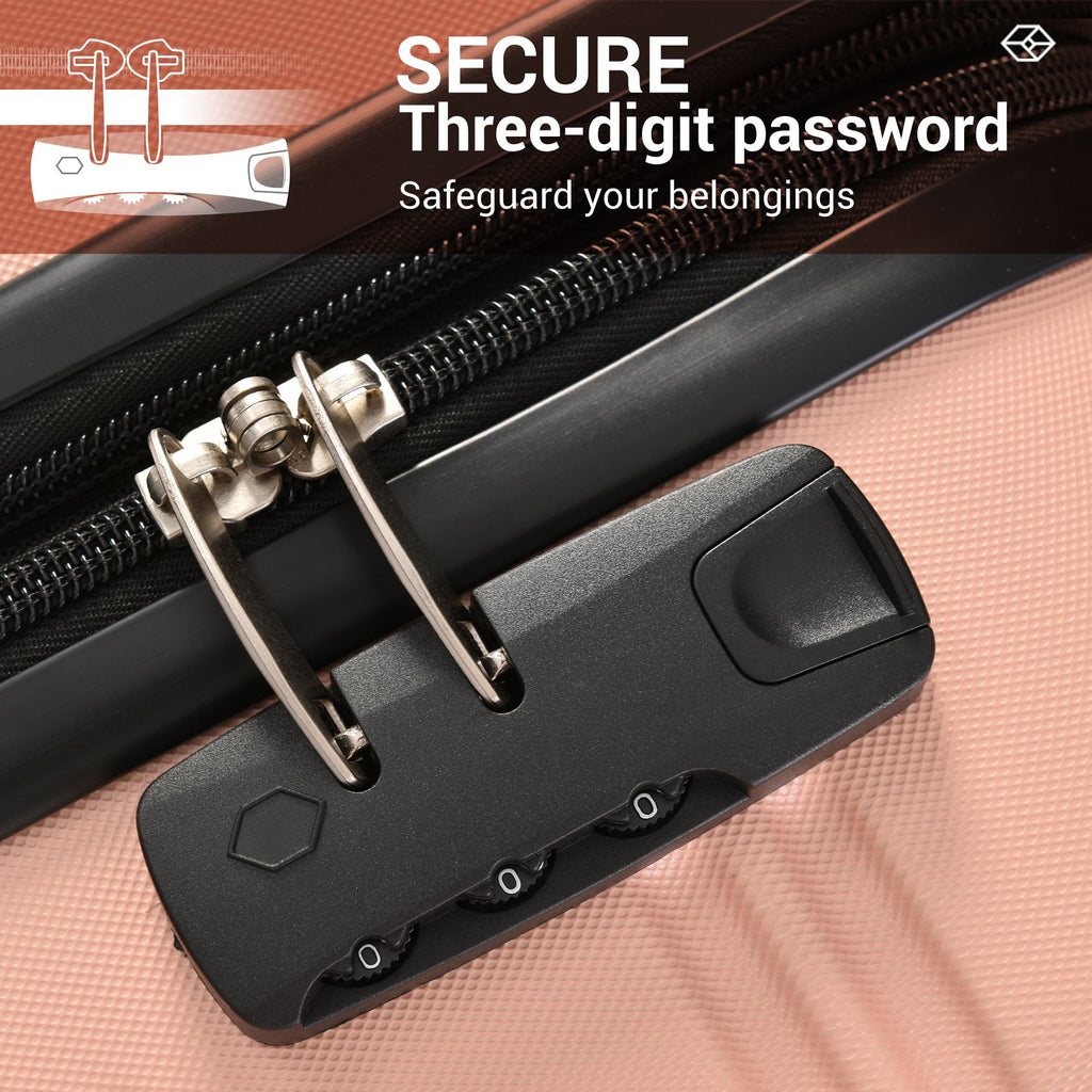 Travel in style with this ABS hard shell travel trolley suitcase set, featuring a chic pink design. The set includes three sizes: 20 inch (35L x 23W x 57H cm), 24 inch (45L x 28W x 69H cm), and 28 inch (52L x 32W x 78H cm), all equipped with silent universal wheels for a smooth and quiet journey. The extendable suitcase function is perfect for family trips or extra luggage, while the adjustable telescoping handle ensures easy manoeuvrability. For added security, each case comes with a secure three-digit combination lock, keeping your belongings safe throughout your travels.