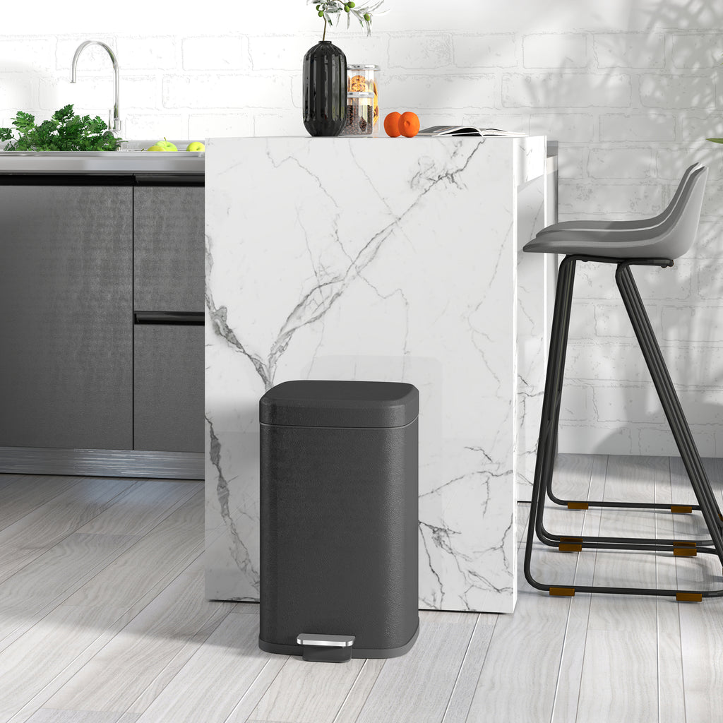 Compact hygiene, for the kitchen and beyond: this modern boxy 20L dustbin for kitchen. Made from metal, this is tough piece suited for everyday use. The pedal opens the lid for hands-free use, with a gentle closing to avoid it disturbing your family. The stay-open option and removable inner bucket makes cleaning super easy. So, when you feel stuck on space, go for this small but mighty pedal bin.