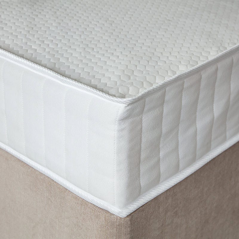The mattress is fitted with a soft quilted, breathable protective sanitised cover with hyper-allergenic & anit-dust mite properties. This spring mattress is of medium firmness and has a bit more bounce compared to memory foam or pocket sprung mattresses which are generally firmer.
