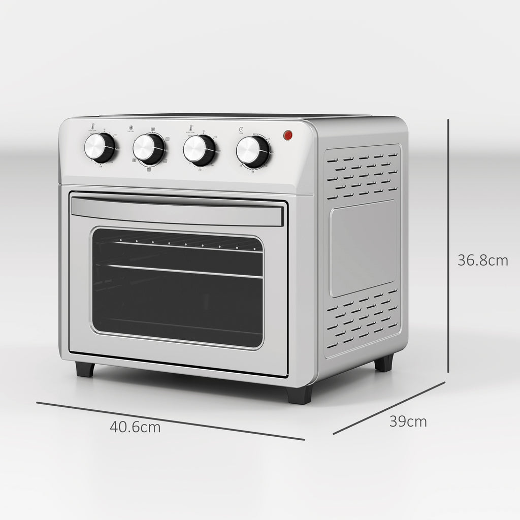 Discover the versatility of 's electric oven, a mini marvel that fits a 12-inch pizza or a 1.5kg chicken! With its 360º hot air circulation, this toaster oven crisps using 85% less oil, great for healthier meals. Energy-efficient with 1600W power, it makes roasting and baking simple in its compact, countertop-friendly design. Suitable as a countertop oven for any small kitchen or a cosy camper setup!