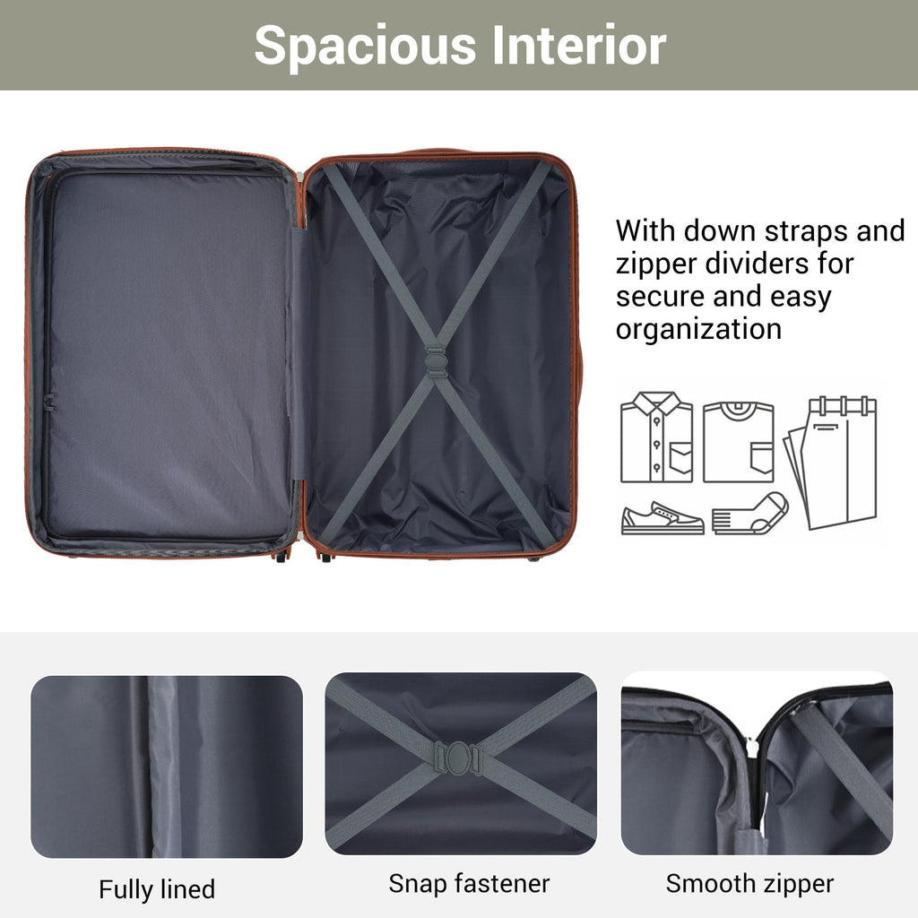 28" 4-Wheel ABS Hard Shell Travel Trolley Suitcase with Adjustable Handle, Luggage with Secure Lock, 52L x 32W x 78H cm, Brown+Green