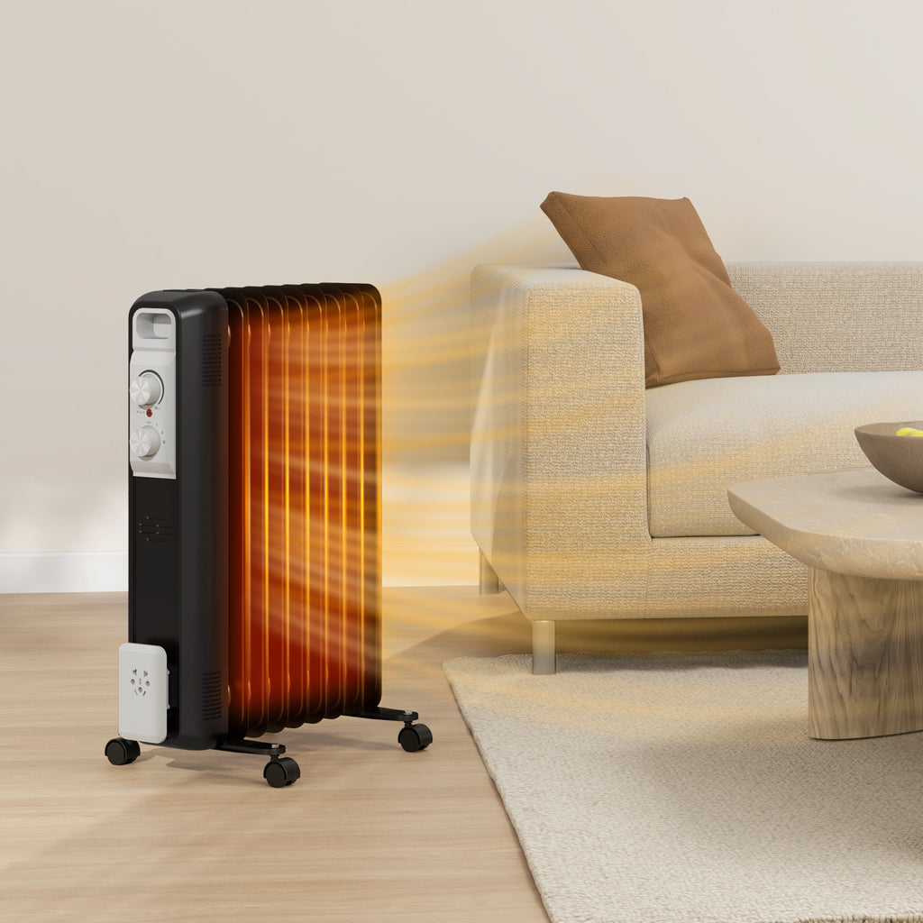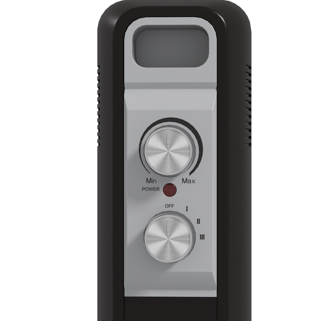 For fast, quiet and powerful heating, look to this oil-filled heater. The nine-fin design provides plenty of heat, for 25? sized spaces - keeping you warm and cosy. Thanks to the oil filling, this radiator heats up in 10 minutes - you won't have to wait long to heat up. Flick between 800W/1200W/2000W, and set the temperature between 15-45?: this portable radiator heater is a piece which customises to exactly how you want.