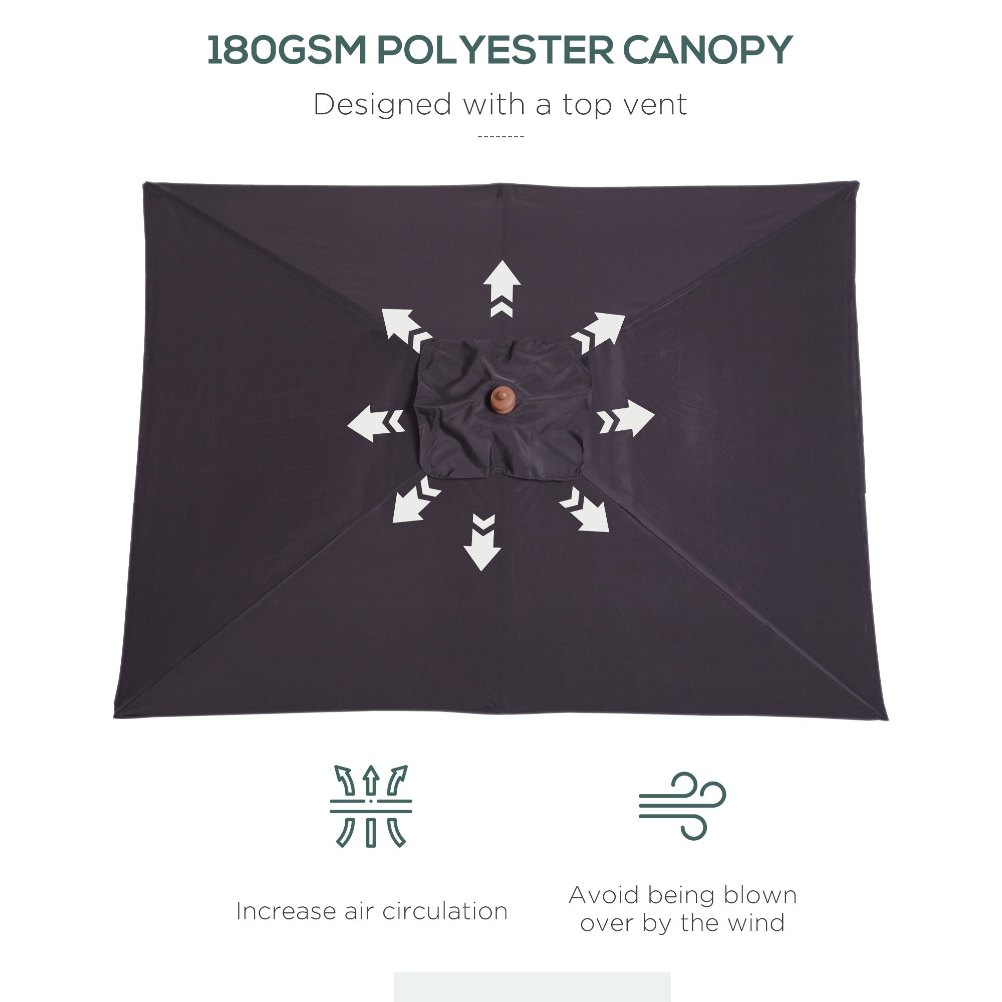 Protect yourself outdoors in ultimate style with this 2m parasol . On the sunshades for garden's top, a large square canopy sits. Made from 180g polyester to provide sun protection, you can adjustable the deck parasol angle to set to a position which is best for you, with eight bamboo ribs for extra support between the frame and canopy. It’s finished with a pull rope for easy opening and closing. This sun parasol is perfect blend of beauty and function.