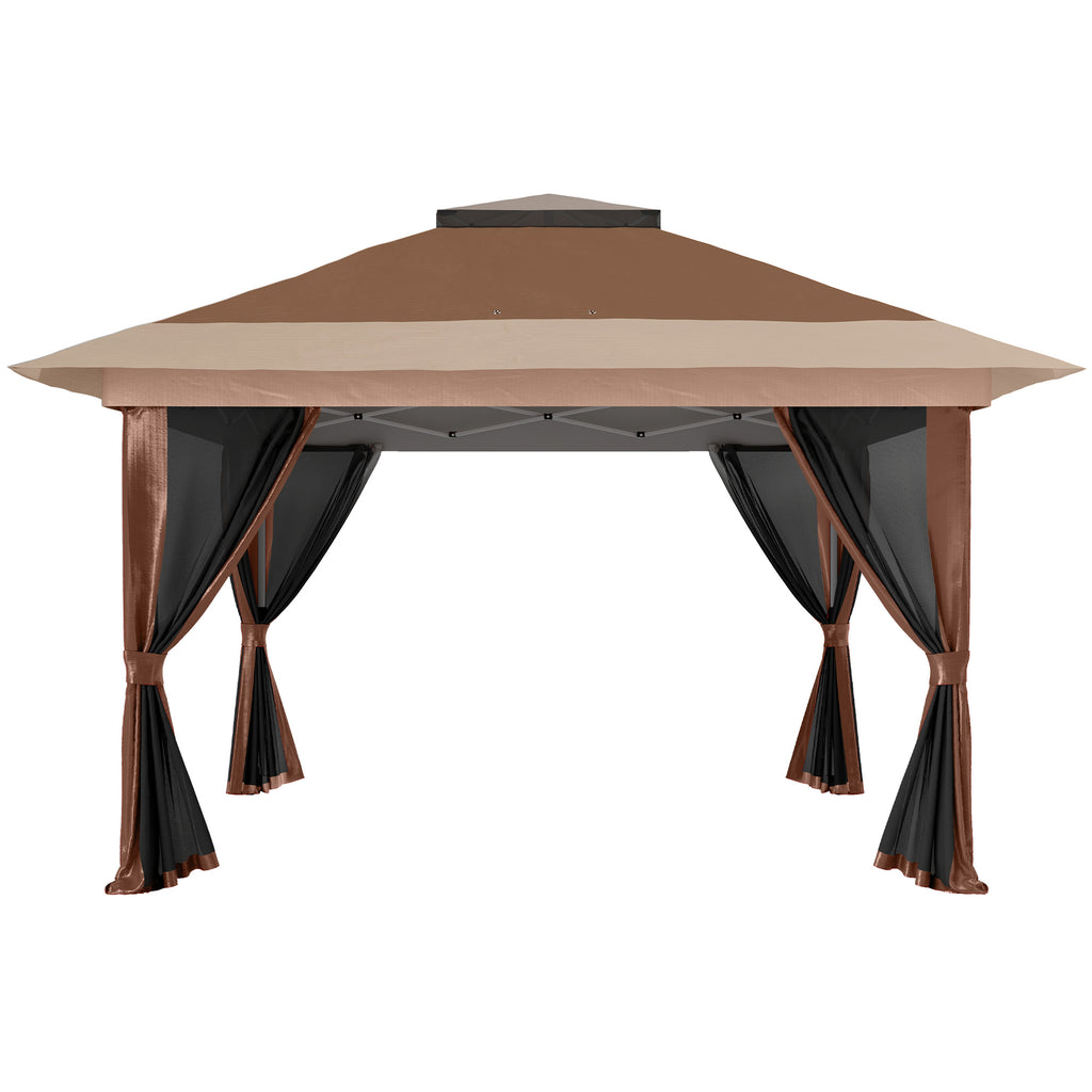 Easy outdoor gatherings with this pop-up gazebo. Fitted with a UPF50+ fabric canopy, you and guests are shielded against 98% of UV rays, fitted with a removable mesh lining to help keep bugs and insects away. Set the metal frame between 260cm, 270cm and 280cm - pick the height you require. Comes with guy ropes, ground stakes and sand bags for weight - with a wheeled bag for storage.