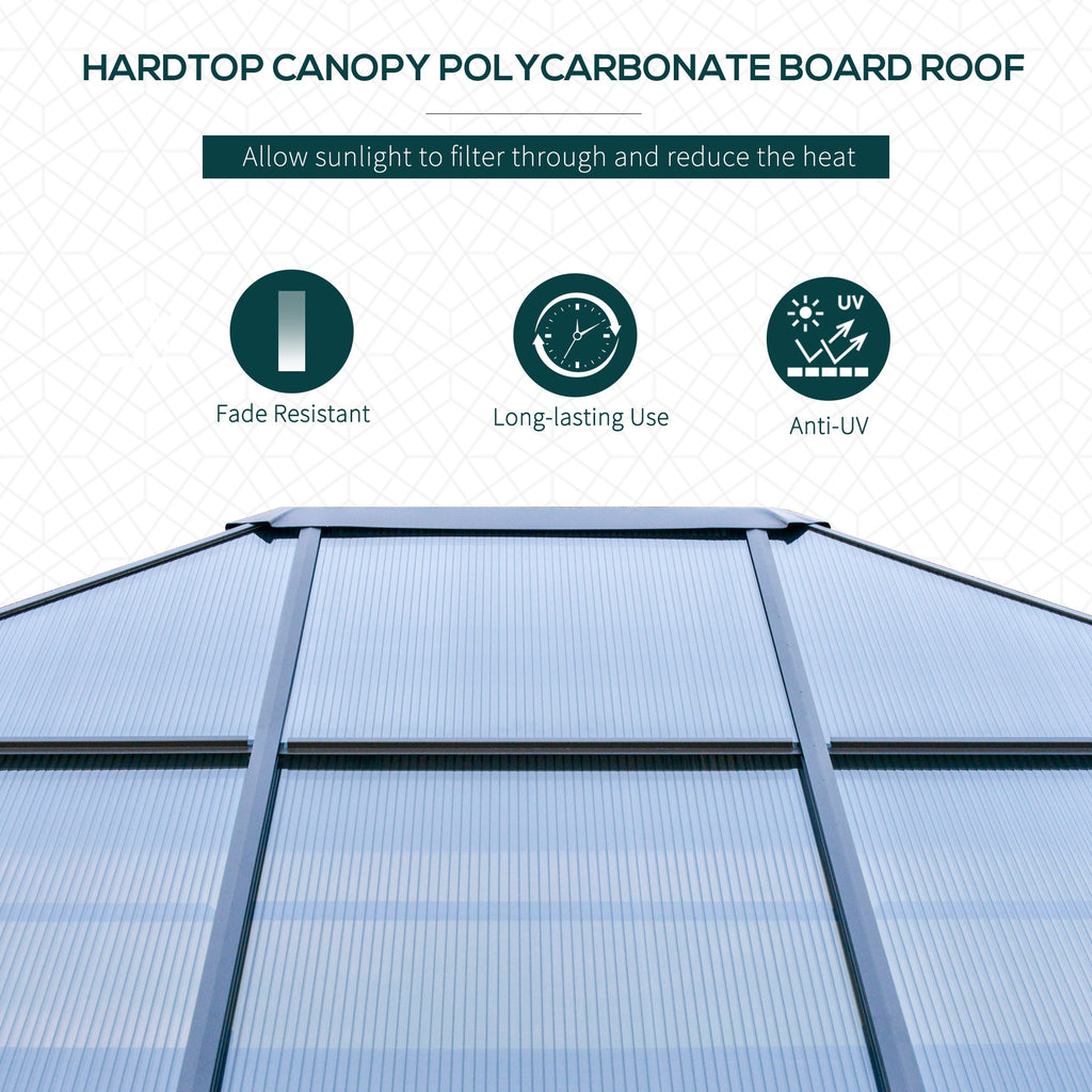 • Deluxe design: Large and bold, it will impress everyone who sees it. The polycarbonate hard top gazebo to hold your outdoor gatherings, BBQs and parties, giving everyone shelter whilst plenty of room to move around.