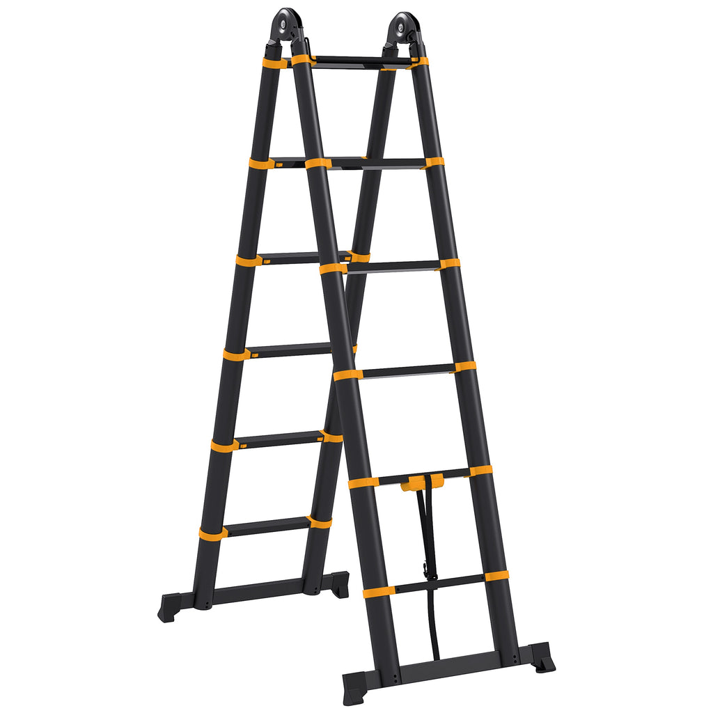 Take the struggle out of those hard-to-reach tasks - opt for this ladder with tool holder. Made from aluminium for a naturally tough yet lightweight piece, it's formed into a telescopic design - can be used in a herringbone shape or fully extended, making it suitable for a variety of different tasks. All twelve steps are extra-wide and non-slip for safety, with the EN131 standard for peace of mind. Ladder is complete with a top pallet for holding tools.