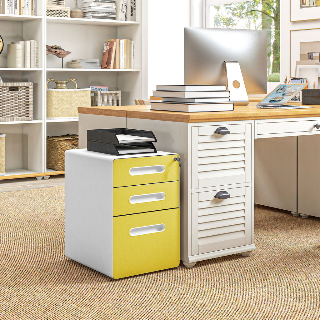 Ensure complete file organisation in modern style with this black filing cabinet from . Spacious in storage, it features two small drawers and a large drawer - plenty of room for keeping everything important all in a place together. Made from steel, the shell is strong and protects inside contents. Secure all drawers at once with the lock - two keys included.