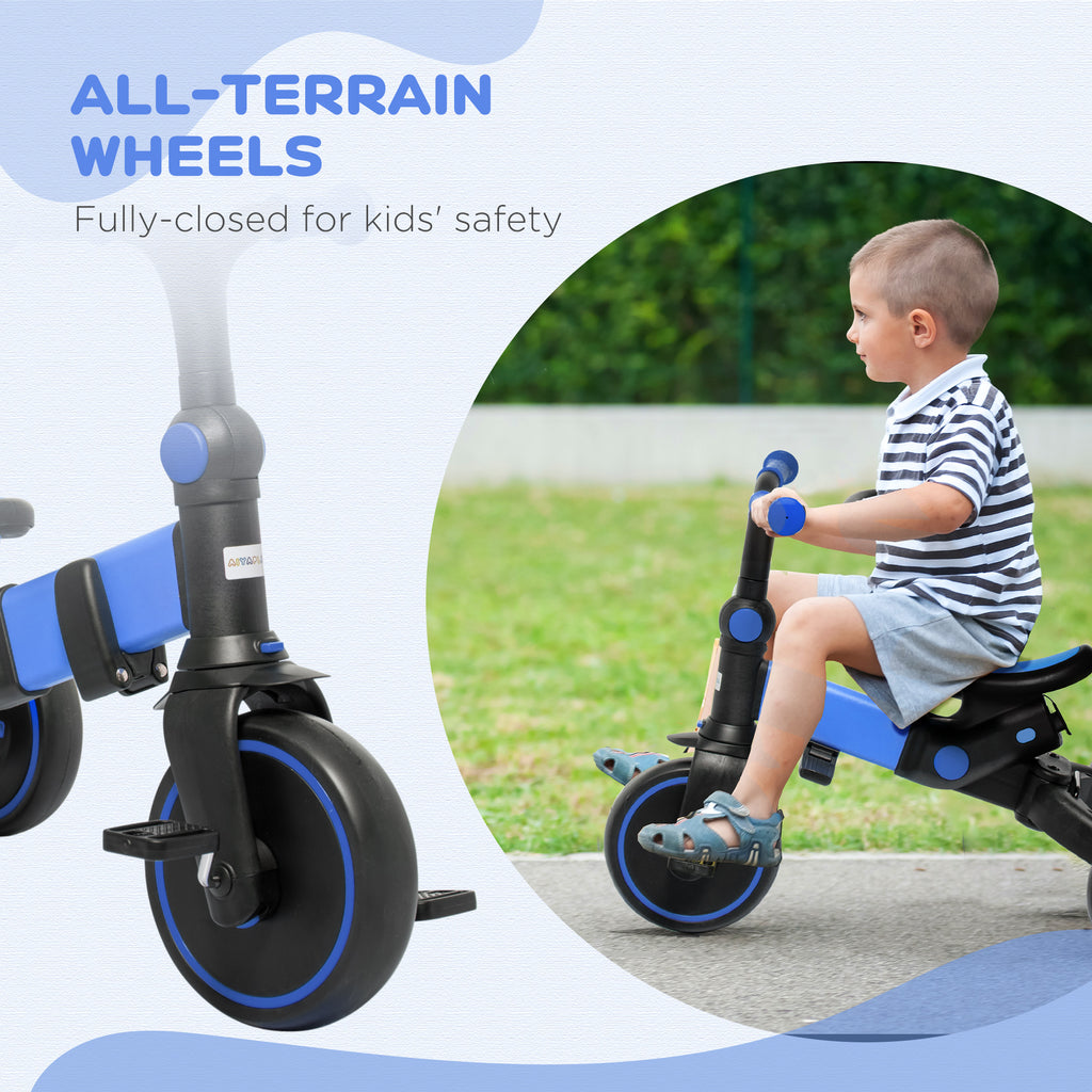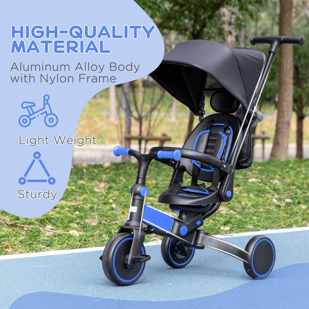 3-in-1 Tricycle for Kids with Aluminium Frame, Baby Trike with Adjustable Push Handle, Canopy and Seat Angle for 18-48 Months, Blue