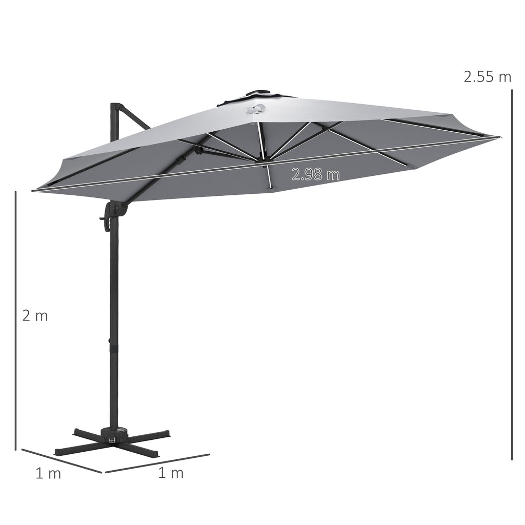 Bring a feeling of sitting underneath the stars at night at any time. This 3(m) Cantilever Parasol with lights from would make it. The LED lights are solar-powered, meaning there's no electricity required. The large garden parasol with base will keep you and your friends protected from direct sunlight and heat; it can be set to four different angles and spins around a full 360° so you can find a position best for you. Evenings out in the garden have now been extended the beautiful way.