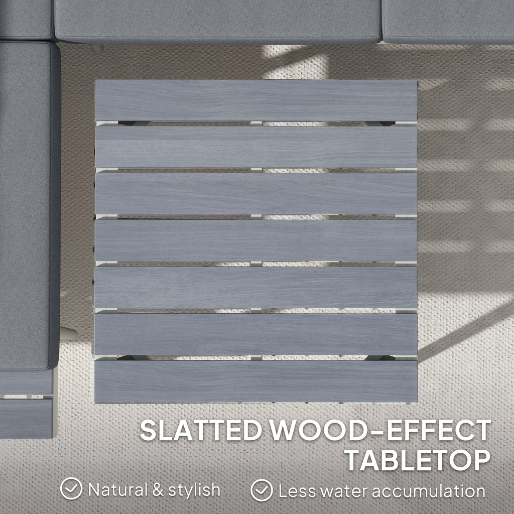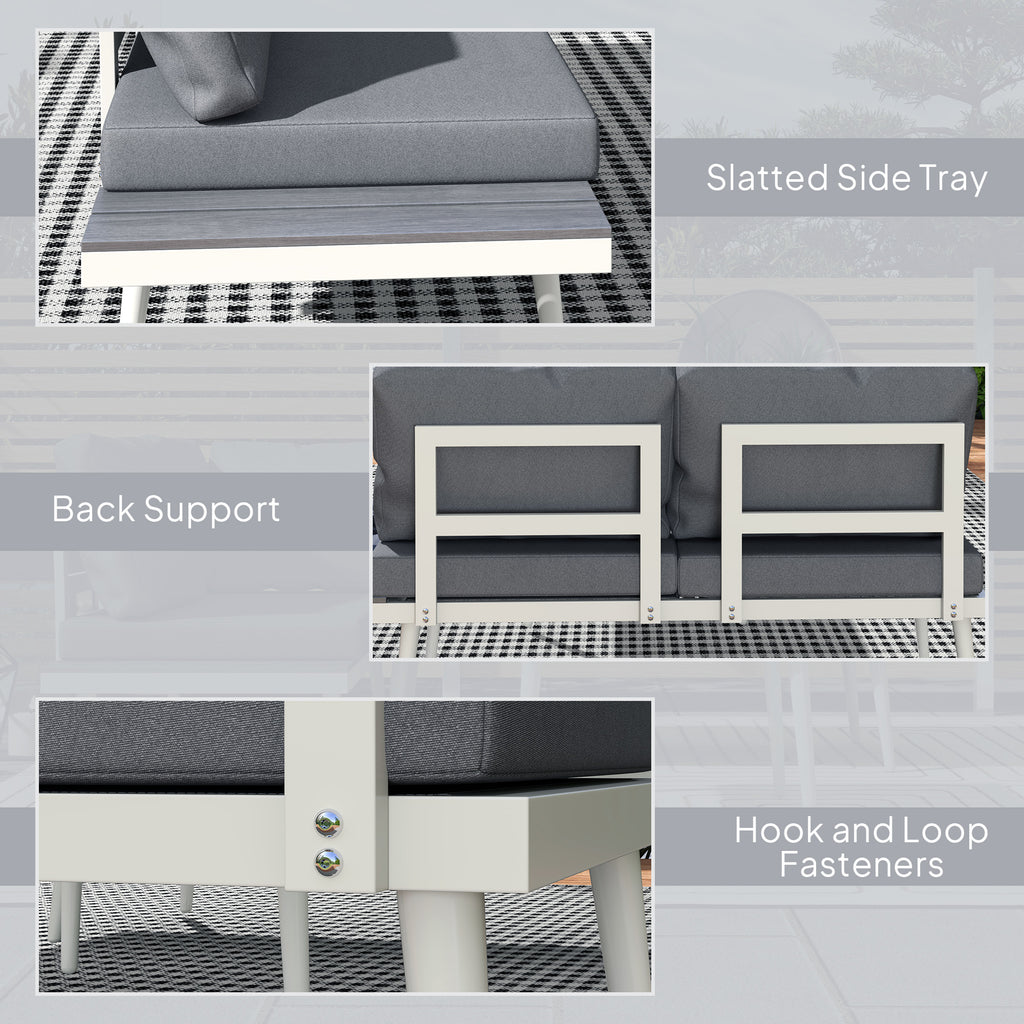 Simple and sleek, finished with total comfort - this corner garden furniture set ticks all the right boxes. The conservatory furniture set comes with three pieces: two loveseats and a square table. Revel in adjustable comfort with the five-position seat. Steel frames mean a strong core. Thick padded cushions and texteline seats of this balcony furniture set allow you to relax comfortably. Slatted wood-effect tabletop and side trays add a stylish and functional touch.