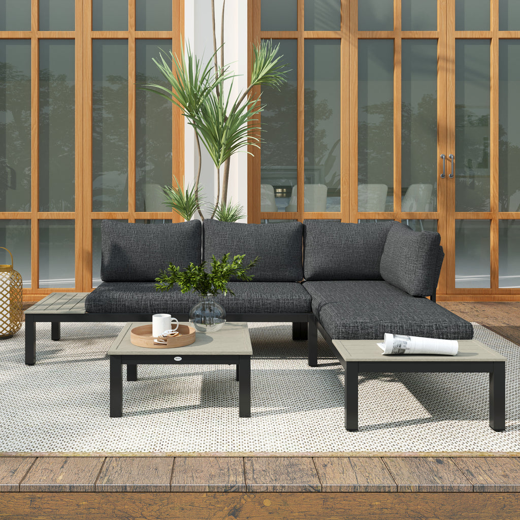 Enjoy the Summer sun like never before with this aluminium garden furniture sets from . The garden set includes a two-seater sofa, a chaise lounge and a matching table to seat up to three people with ease – great for enjoying the outdoors with family and friends. The aluminium frame of the metal garden furniture set is strong. Small end tables on the sofas complete each piece, with a matching table included for extra surface space – meaning you won’t have to move a muscle once sat down.