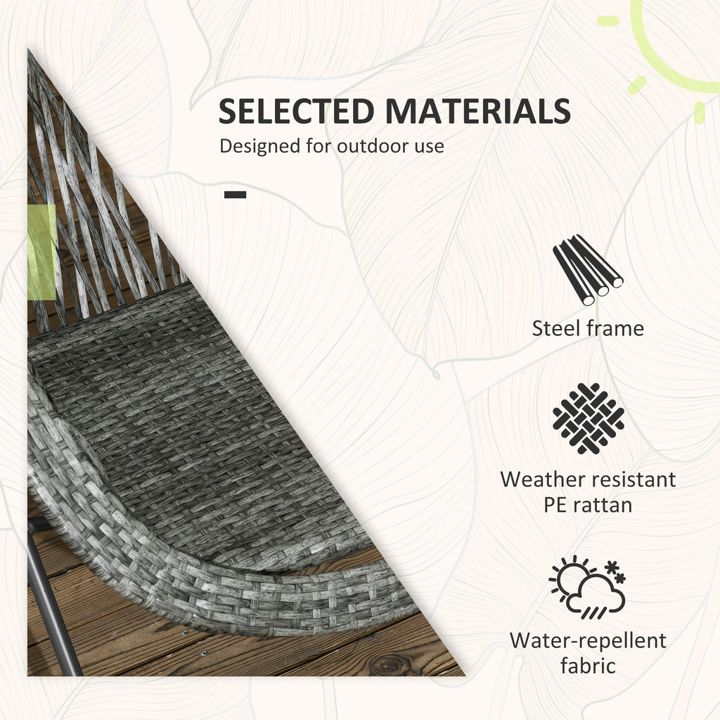 Spin a web of difference into your garden - go for this three-piece set. The two chairs comes in a rattan string design - a recognisable garden design, with a unique twist. The large rounded design of the chairs offer you plenty of room to sit, with the matching table giving you a handy place to keep items close to you. Powder coated steel frames mean strong cores; foldable too to carry and store easily when not being used.