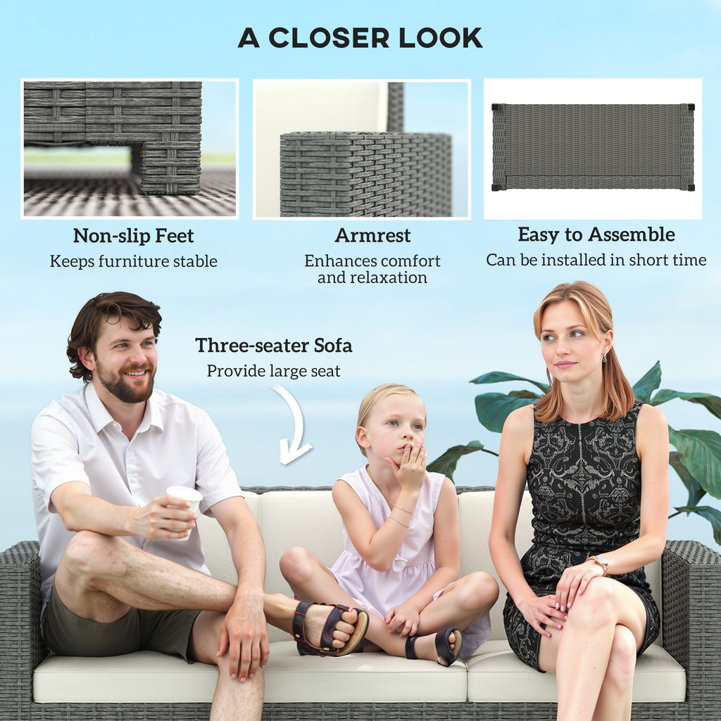 Brighten your garden with the 3-seater garden sofa from . Made of steel frame to prevent rust and damage outdoors, wrapped in rattan for easy cleaning and is a mainstay in your garden furniture. Come with 10cm thick padded and plush cushions, as well as being water-resistant and having washable covers, with a high back and armrests for plenty of support—a great way for three persons to sit back and relax in the sun.
