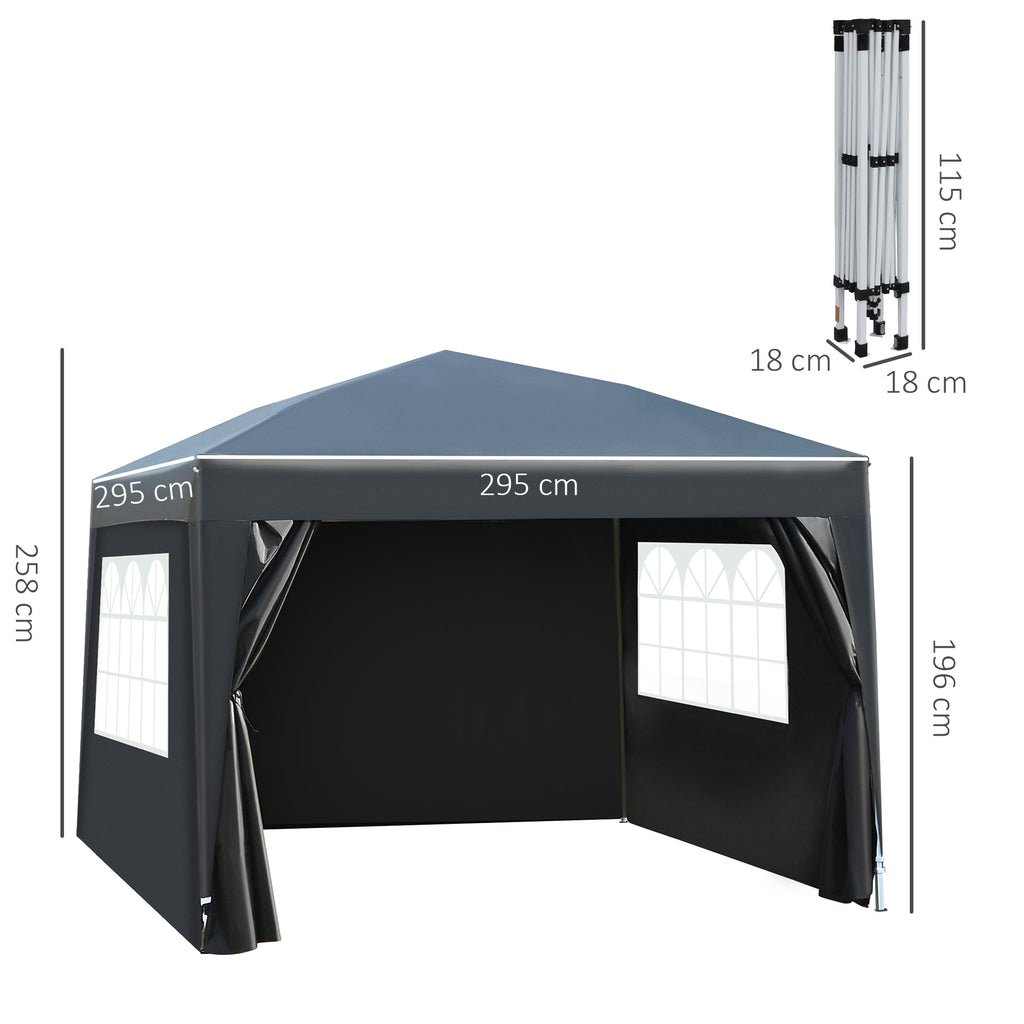 3 x 3 m Garden Pop Up Gazebo, Wedding Party Tent Marquee, Water Resistant Awning Canopy with Sidewalls, Windows, Carry Bag, Black