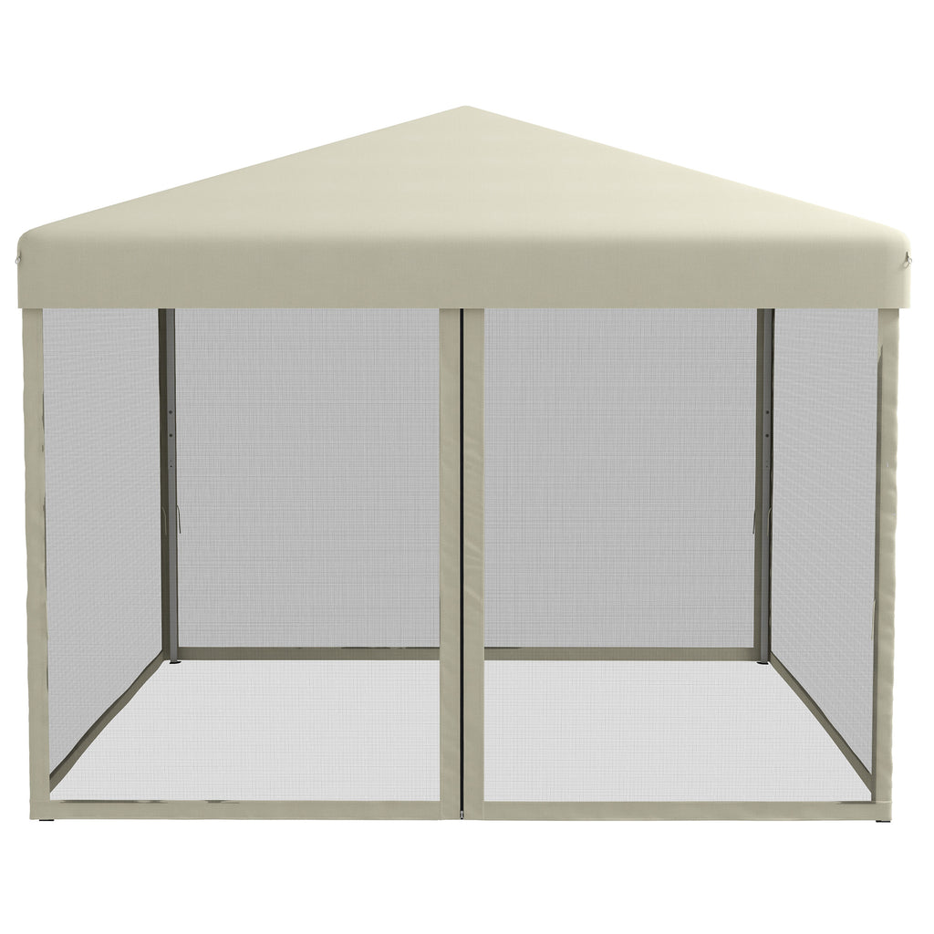 This pop up gazebo with sides is great for camping, backyard parties, events, the beach, or can even be used as a nice vendor's booth. Constructed from metal, the frame provides both strength and stability, and has a durable mesh screen that encloses all four sides, so this garden shelter is sure to keep the bugs out. This garden tent can be set up within minutes and will be a great addition to your lifestyle.