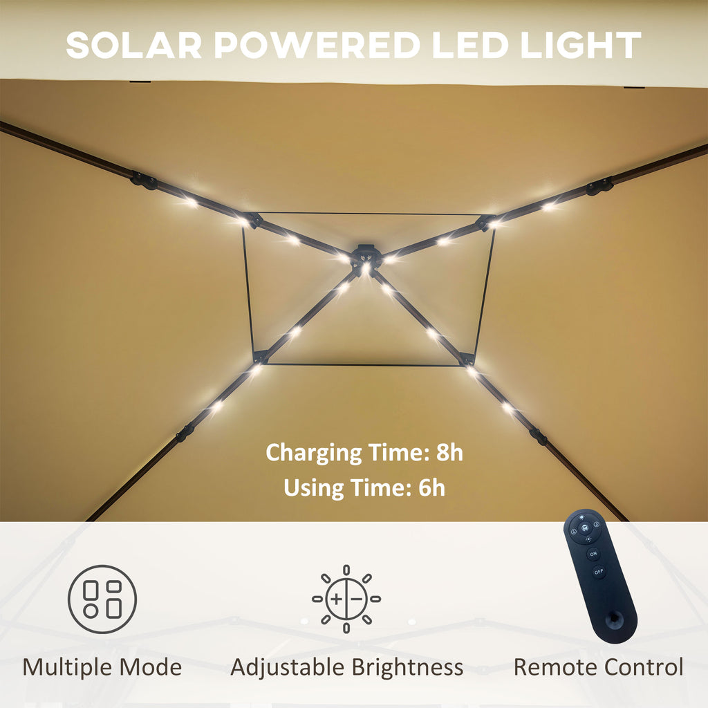 For day AND evening use, look to this Outsuuny pop-up gazebo with sides. It's fitted 16 solar-powered LED lights; charge in the day to use at night - no electricity required. A metal frame for a strong structure, which can be adjusted three positions between 250-270cm. Pop-up design so you can put it up and take down easily; take with you easily, wherever you want. Included remote control for on/off, brightness and mode adjustments. Wheeled carry bag included.