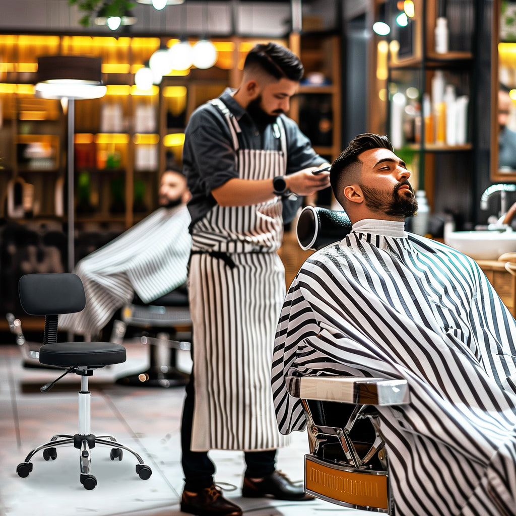 A flexible chair, to give you flexibility for the task - this swivel stool. Fitted with five wheels and with a 360° seat, this moves around freely and easily. Thanks to the padded seat and back panel, this is a comfortable and supportive piece, finished with faux leather upholstery for a sleek touch.
