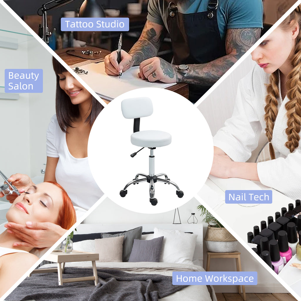 A flexible chair, to give you flexibility for the task - this swivel stool. Fitted with five wheels and with a 360° seat, this moves around freely and easily. Thanks to the padded seat and back panel, this is a comfortable and supportive piece, finished with faux leather upholstery for a sleek touch.