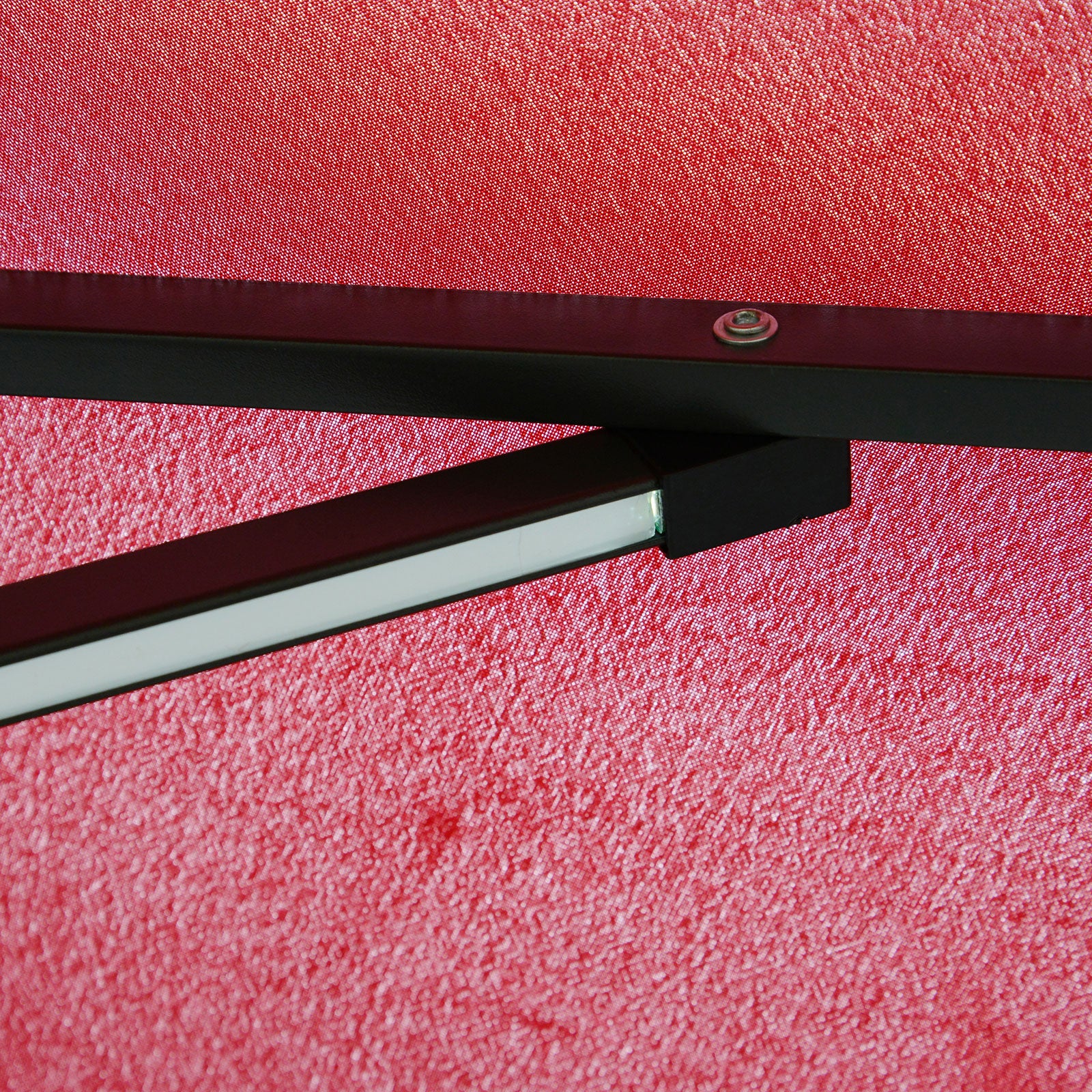 Make the summer evenings last longer with this parasol umbrella . It is equipped with eight solar powered LED strips under the canopy, providing soft light when the sun goes down, without requiring a battery. The steel frame is strong so it stands steady; eight ribs attached to the canopy offer plenty of support. It's finished with a crank handle to open and close the canopy quickly – perfect for when you need shade instantly.