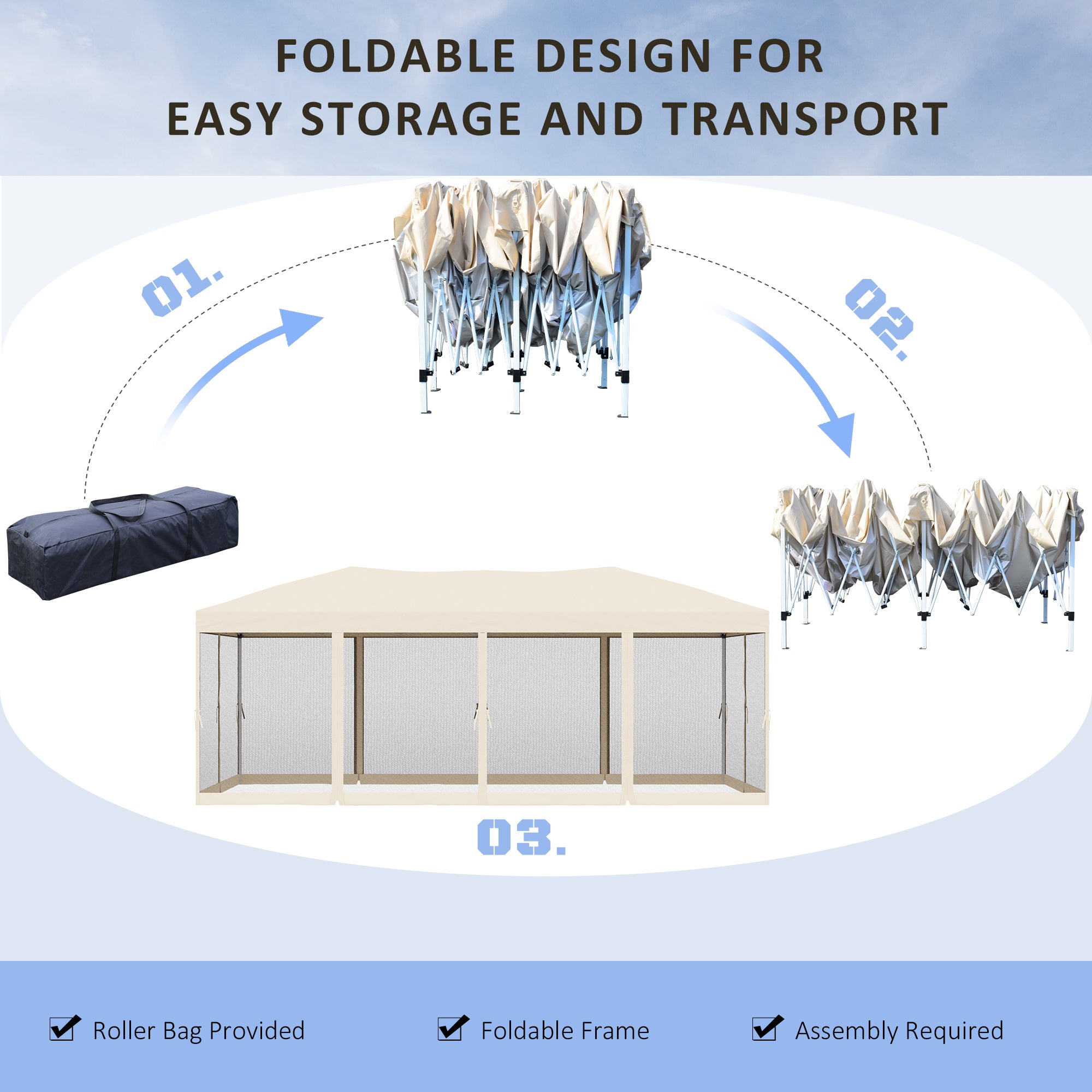 Grab your favourite drink and enjoy the shade of freedom with this 3m x 6m gazebo with sides. The sturdy frame adds a durable place for you to relax in the shade. This garden shelter is perfect for any occasion such as family gatherings, picnics, camping or tailgates. The mesh sidewalls make it great for keeping comfortable in, and you can enjoy the outdoors even if the sun goes down. Save time to set up, you will have more time to enjoy yourself with stylish pop up gazebo.