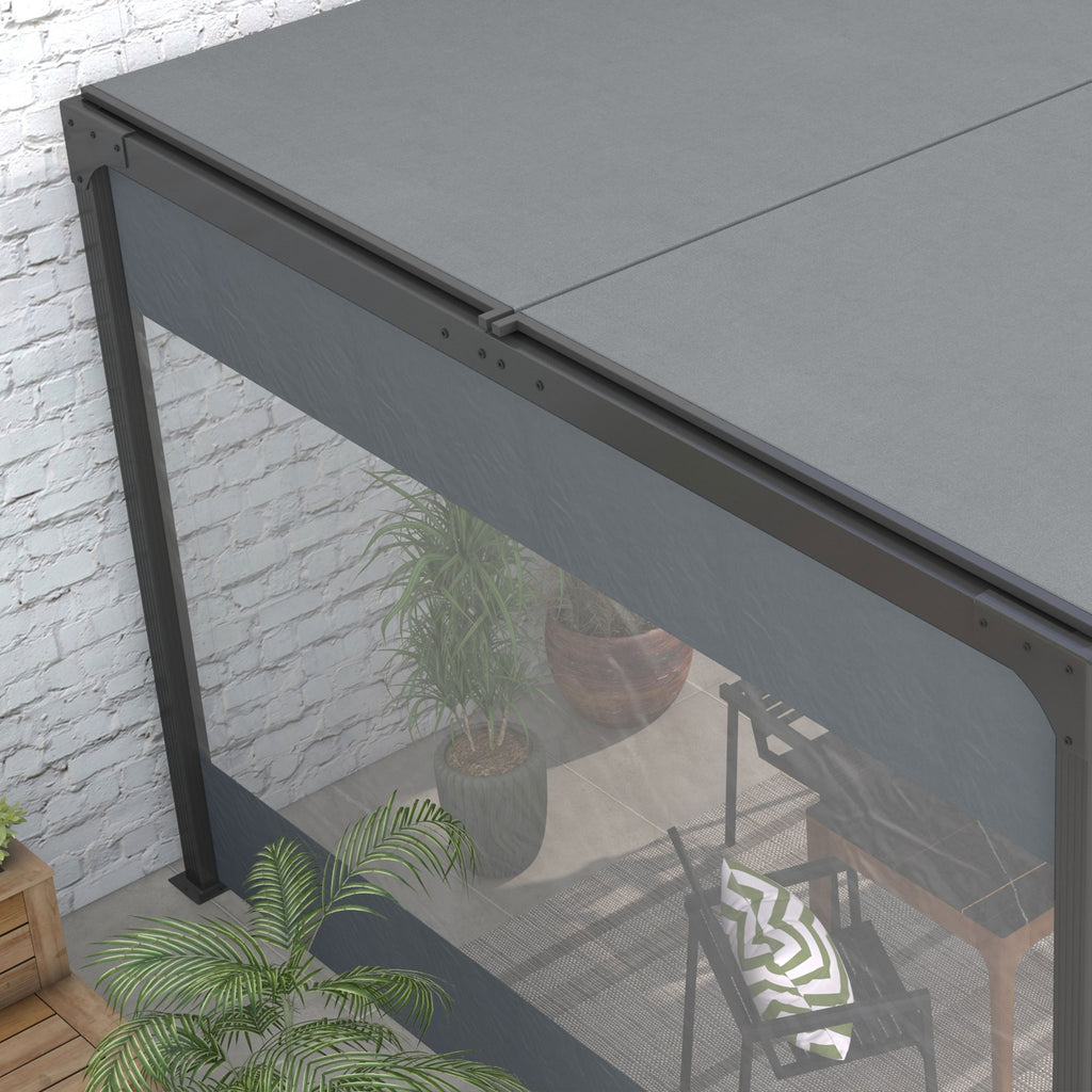 Designed to fit 3(m) pergolas, this set of two side panels give your frame a new lease of life. The two walls are made from thick polyester - weather resistant and suitable for outdoor use. Both walls feature a large clear window for natural light. To use, attach with the O-rings. Please note that only walls are included, the pergola frame is not.
