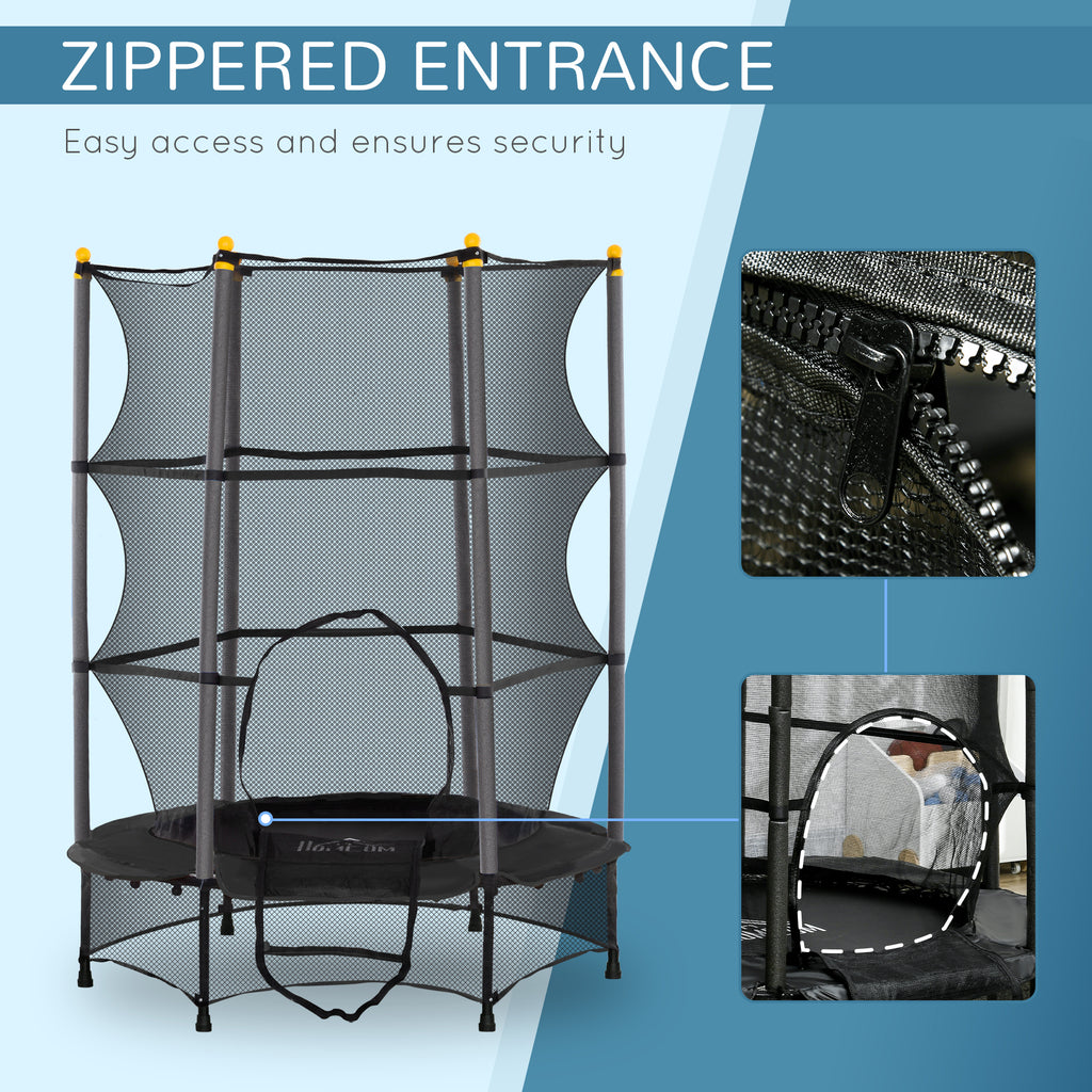 4.6FT/55" Kids Trampoline with Safety Enclosure, Outdoor Indoor Use, for Ages 3-10 Years, Black