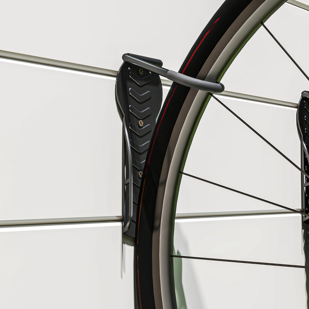 Transform your garage with the garage bike rack, a set of four wall-mounted bike hooks designed for a neat, space-saving solution. Crafted from strong, rust-resistant metal, each rack supports up to 30 kg, ensuring your bikes are secure. Plus, they easily fold away for compact storage, making them an essential addition to any cycling enthusiast's garage.