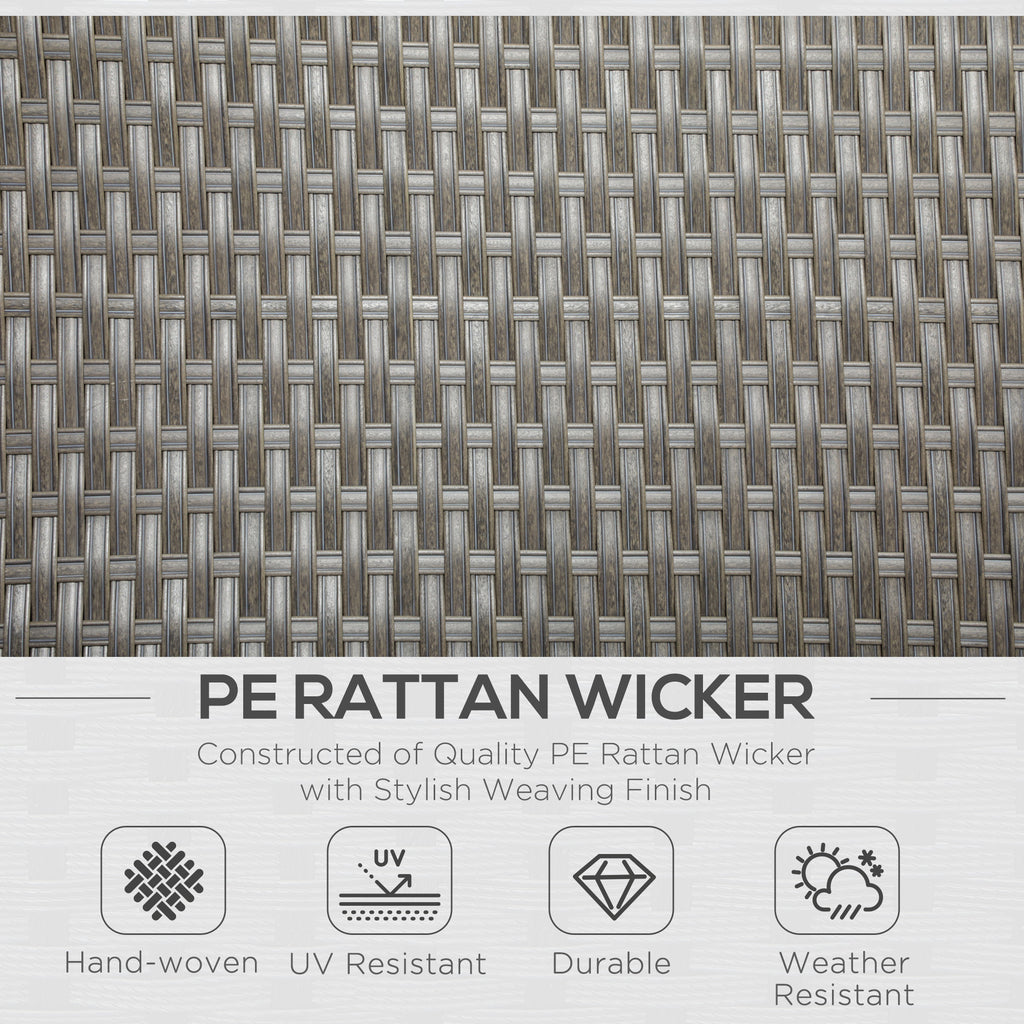 Transform your outdoor space with the 4 Piece Rattan Garden Furniture Set, designed to bring comfort, style and versatility to your yard. This elegant grey set includes a loveseat, two reclining armchairs with footrests and a glass coffee table, creating a perfect seating area for up to four people. Crafted with durable materials and thoughtful features, it combines functionality with a modern aesthetic, making it ideal for relaxing or entertaining in your garden or conservatory.