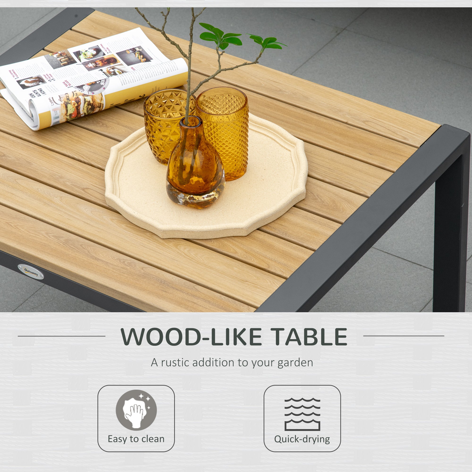 • ALUMINIUM FRAME, MINIMALISTIC LOOK: With powder coated for extra strength, the outdoor corner sofa's aluminium frame is strong and fully supportive. Stripped-back look with wood-effect panels makes the aluminium garden sofa easy to dress up and leave blending into the background.