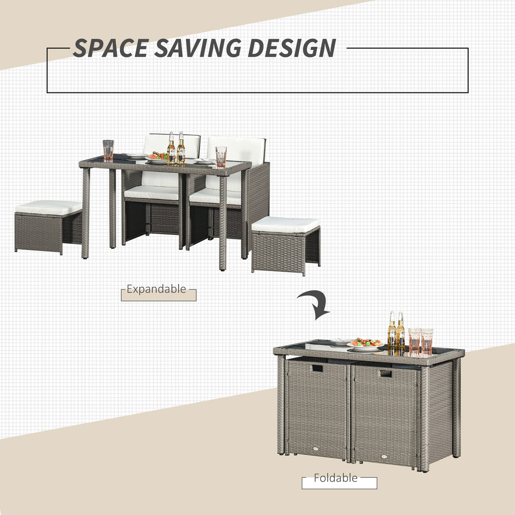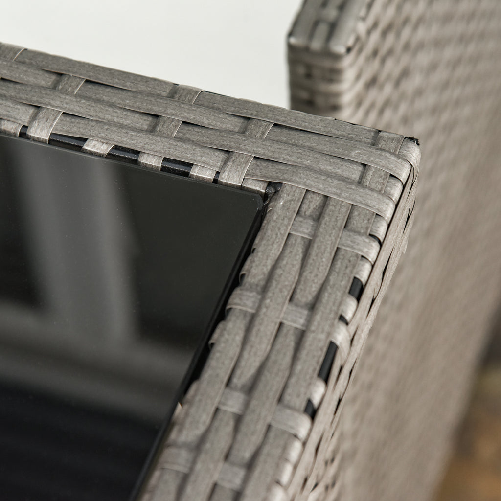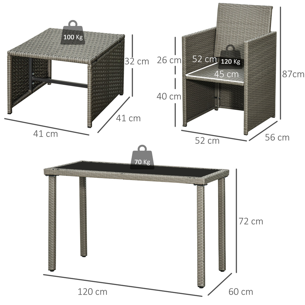 This 5 piece garden dining furniture is an ideal solution for a small garden, patio or conservatory. Comes complete with 2 chairs, 2 footstools and a table, ideal for any outdoor setting. The rattan corner sofa dining set is made from a steel frame construction and covered with PE Rattan weave, this corner rattan dining set will look perfect in any décor. The garden sofa dining set also has the ability for the chairs and stools to be stored under the table when not in use.