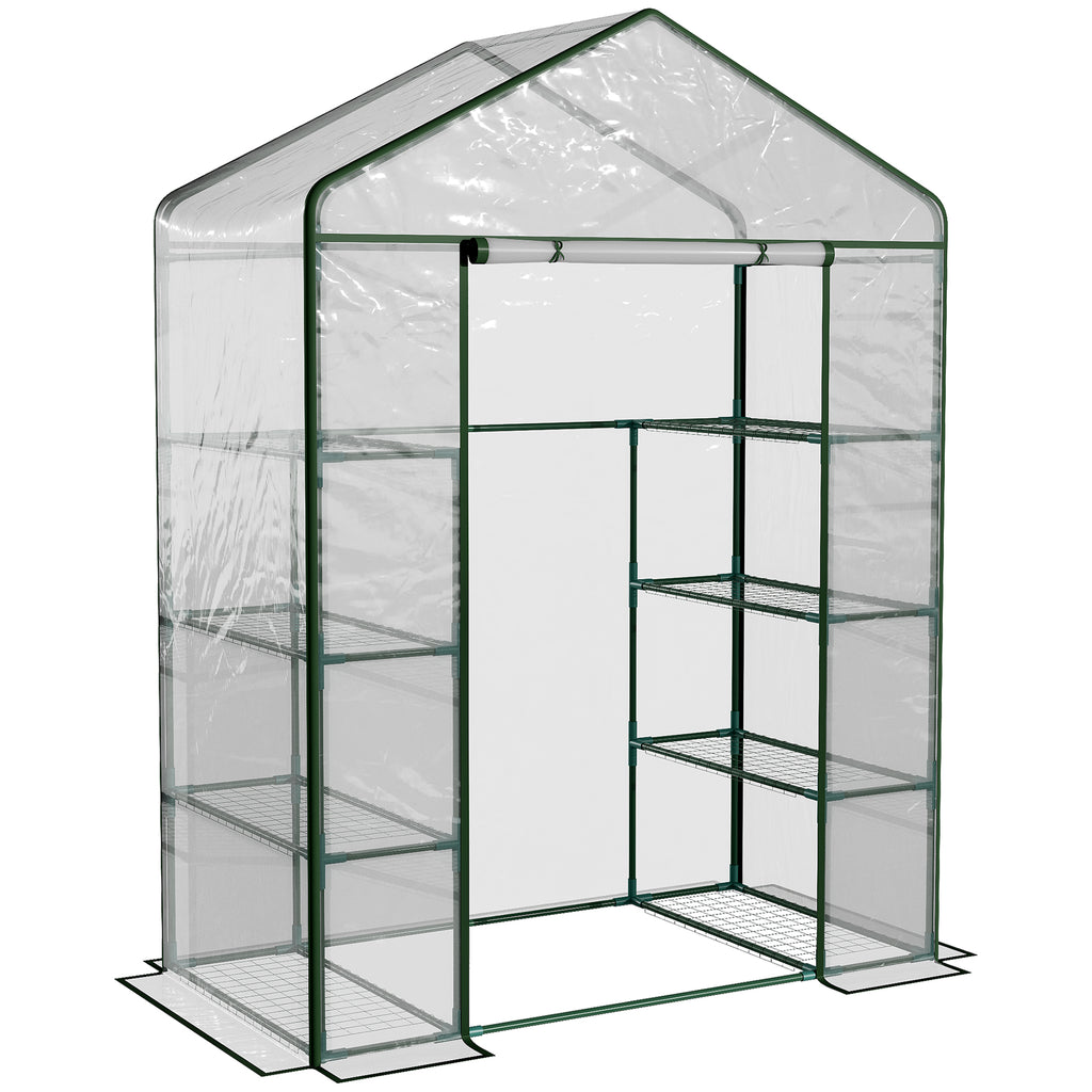 This Compact greenhouse is a perfect growth environment for flowers, plants and even vegetable. Made with a sturdy steel pipe frame and covered with a durable pvc film, this will maintain a consistent temperature for essential and healthy growing. It comes complete with a 8 grid metal rack for easy placing of pots, and the clear pvc film will give maximum light and not cause the greenhouse to overheat. A perfect solution for your home growing needs.