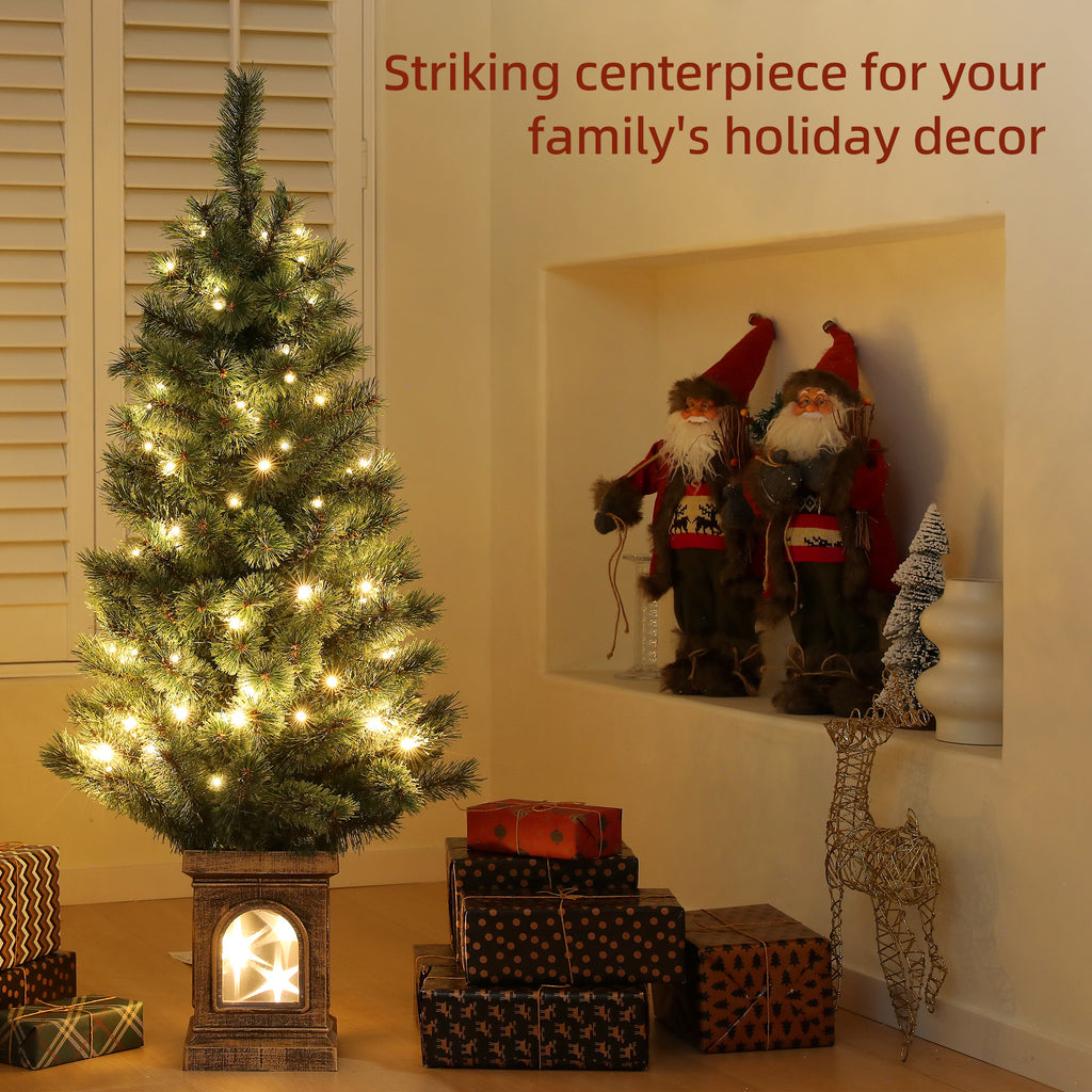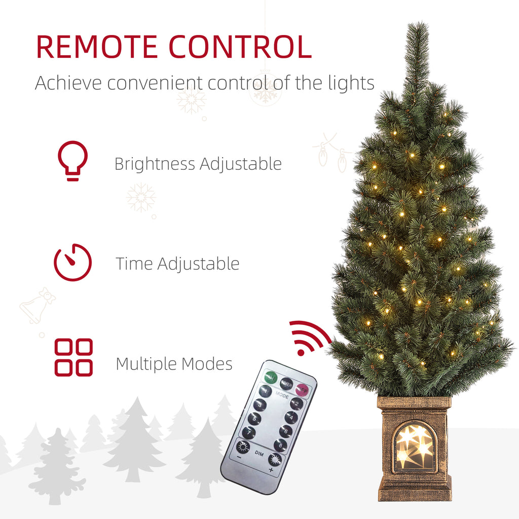 Light your Christmas night the easy way, thanks to this Christmas tree with lights and realistic plastic blooming pine needles. Thanks to the already included LED lights, there's a less worry to think about when dressing this piece; the RGB string comes with 8 pre-set modes, brightness adjustment function, a timer and a remote control. Flame retardant plastic makes this pre-lit small Xmas tree safe, with a square base included so it stands steady in place.