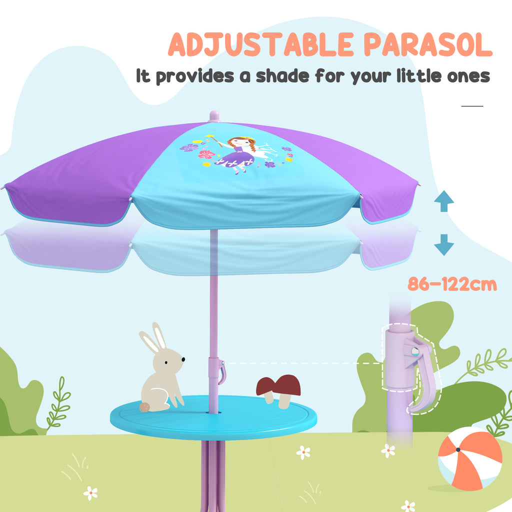 kids swing chair and garden table set will completely transform outdoor playtime. It provides children with a fantastic spot to play games and socialise while ensuring their safety with seatbelts. The charming fairytale design adds a touch of whimsy to any outdoor space, allowing children's imaginations to soar. Crafted with a stable steel frame, this swing bench ensures durability, making it suitable for both indoor and outdoor use.