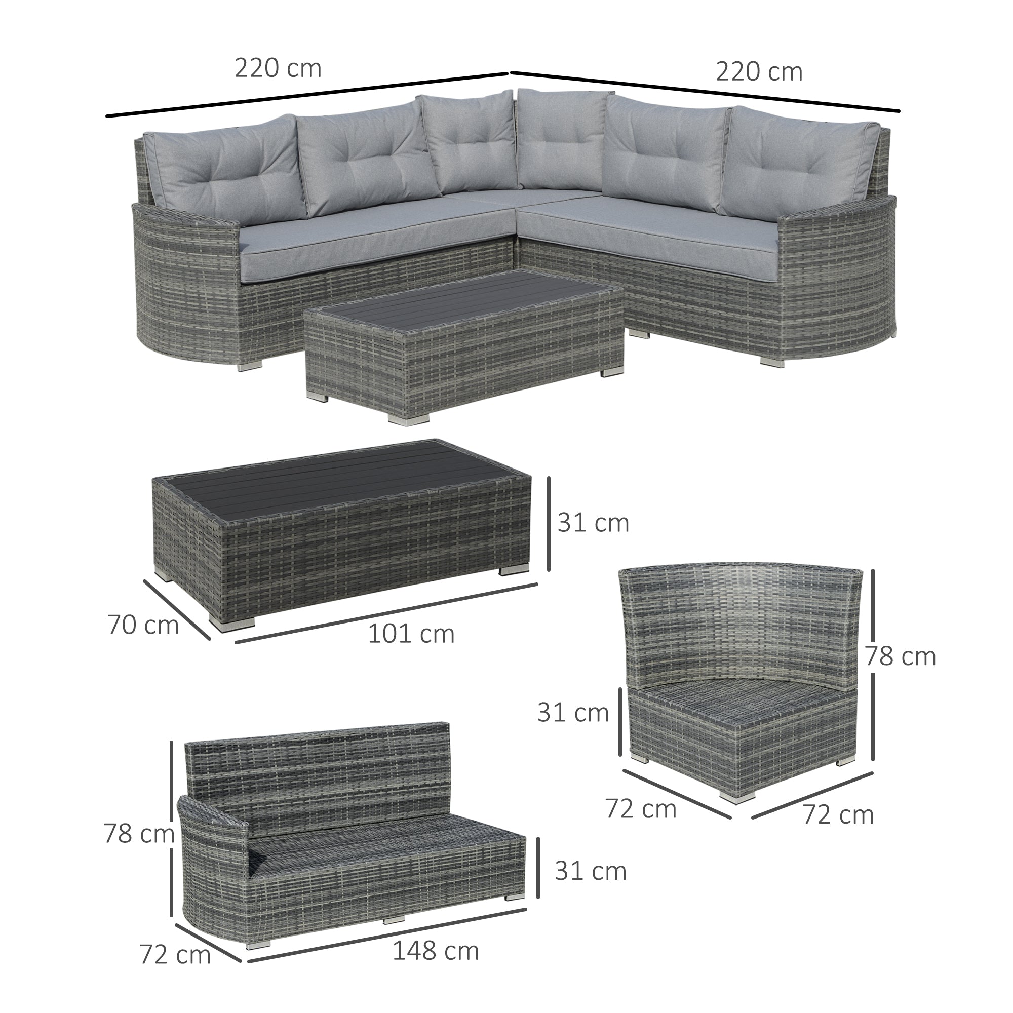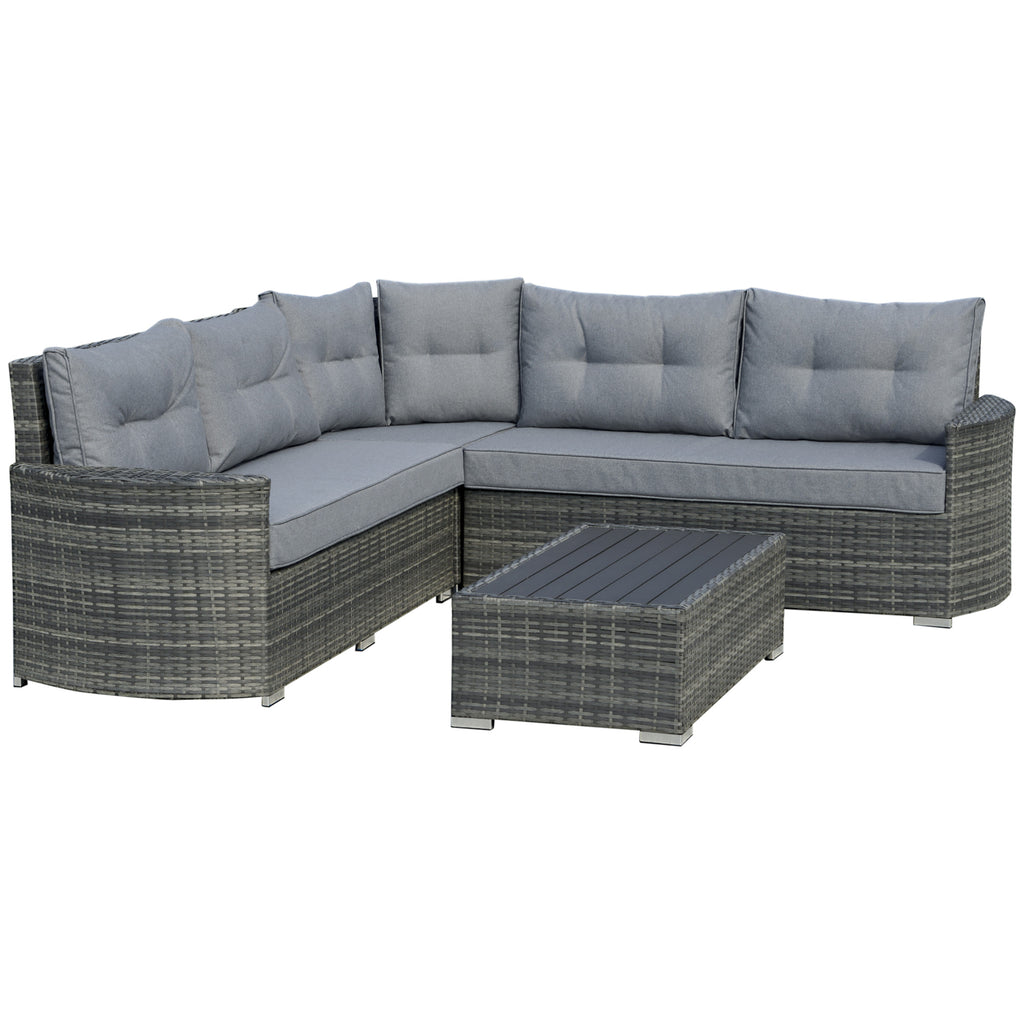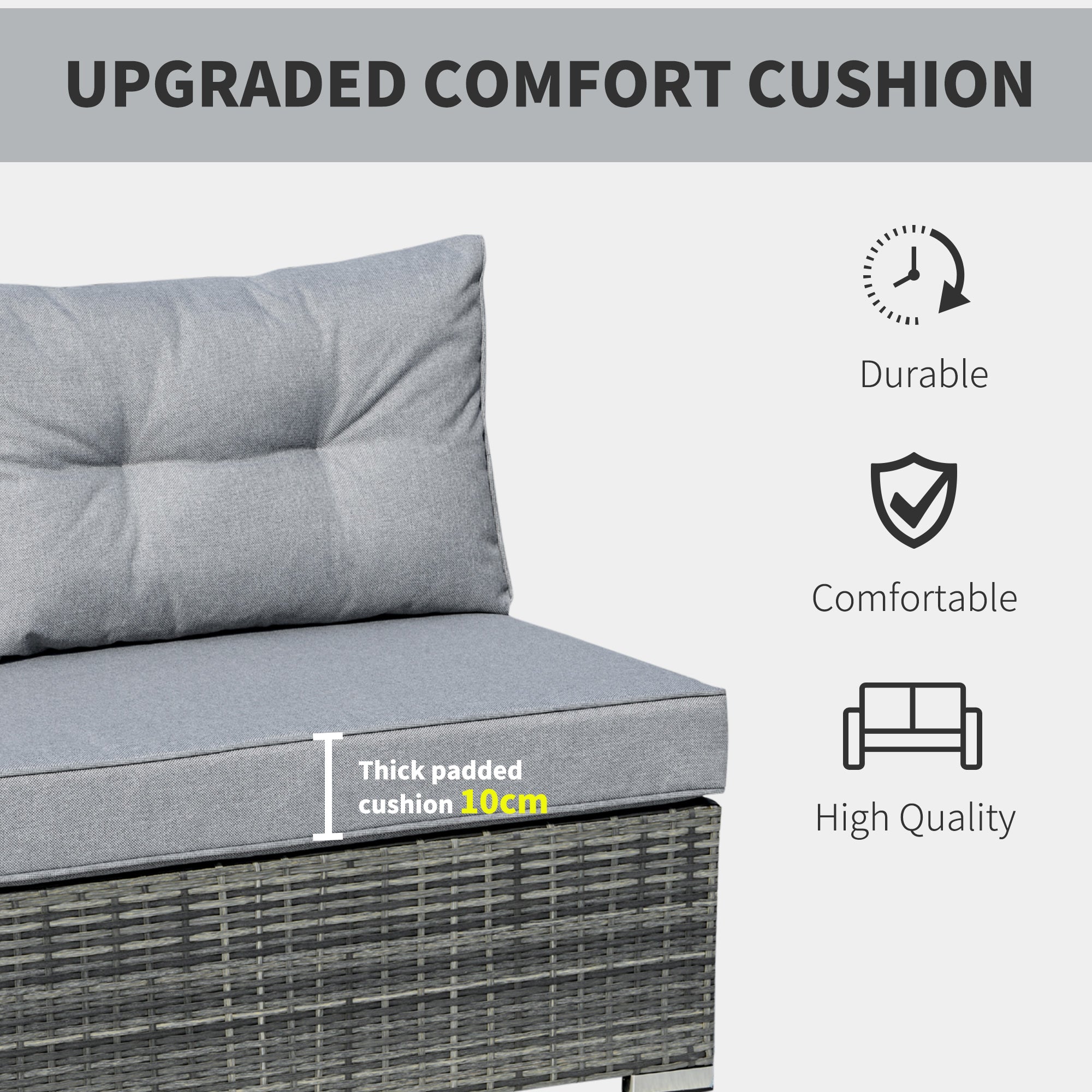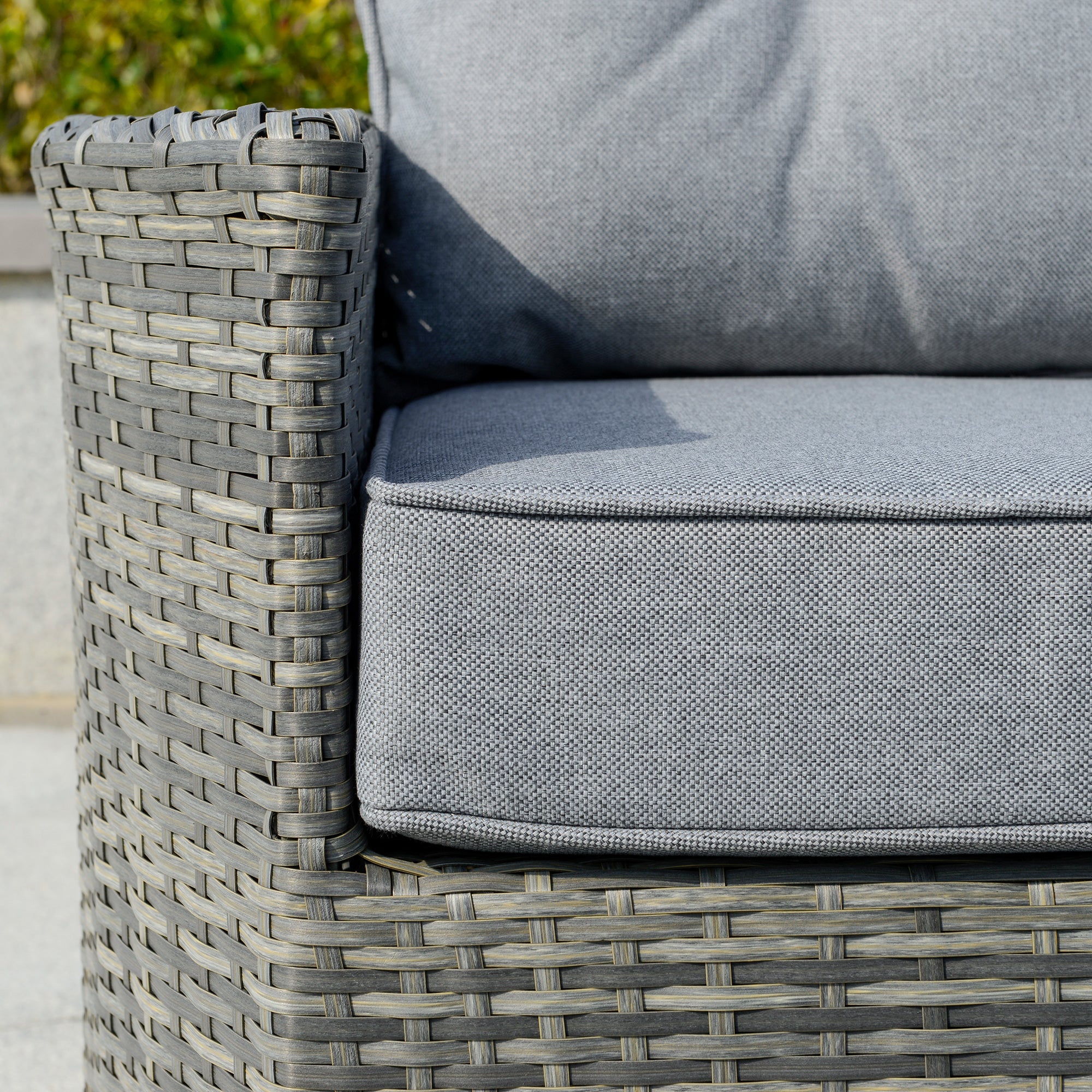 Make your garden attractive and let you feel relax at your own place. This outdoor rattan sofa set is best choose for you for your backyard. This 4 pieces rattan furniture sofa set come with two armrest two-seat sofa, a middle corner sofa, and a tea table. Made of lightweight aluminum frame wrapped in PE rattan ensuring durability and protection. Thick padded filling seat and back cushions for extra comfortable. A centerpiece tea table covered with a topper for stylish.