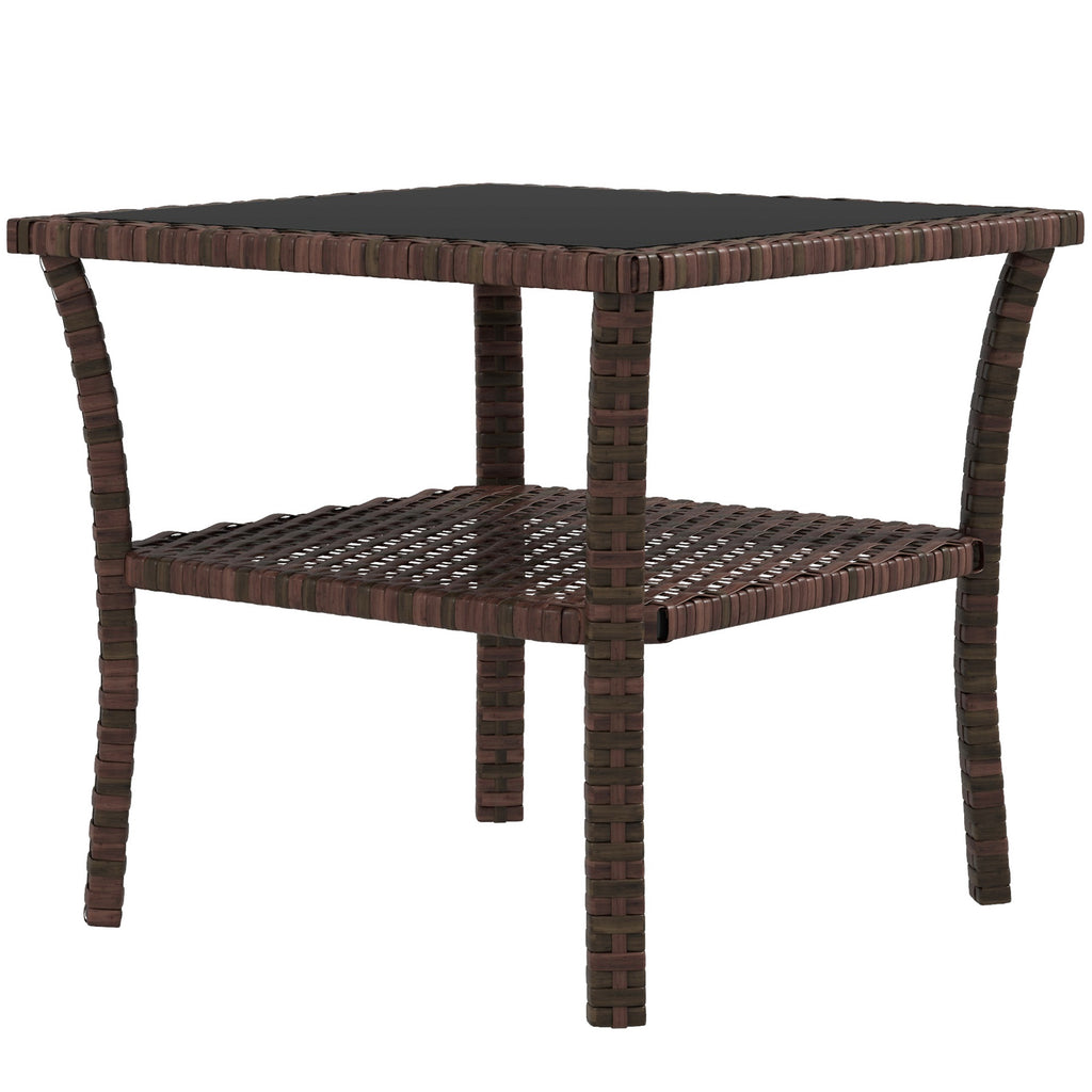 50cm Outdoor PE Rattan Coffee Table, Patio Wicker Two-tier Side Table with Glass Top, for Patio, Garden, Balcony, Brown