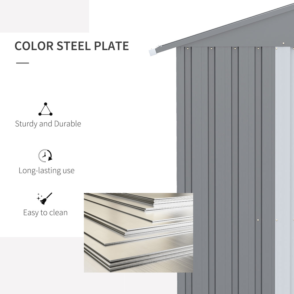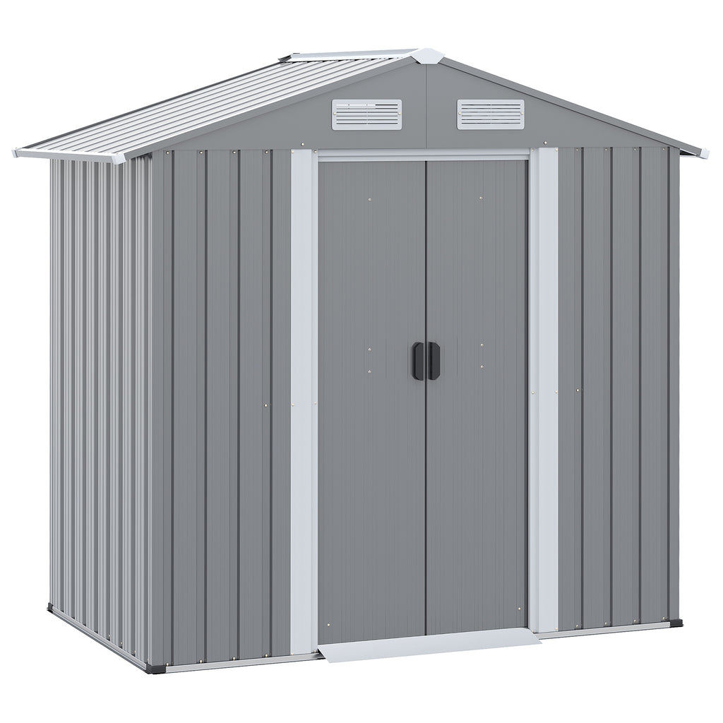 This 6 x 4 garden storage is the perfect addition to your outdoor space and keeps your tools well-organized. You can also use it as a metal bike shed or a mobility scooter shed. As a garden bin storage to prevent the bad smell around your house. Double doors for easy access and four vents for air flow inside to prevent mould and humidity. Finished with a latch lock for security, and does not include a floor foundation.