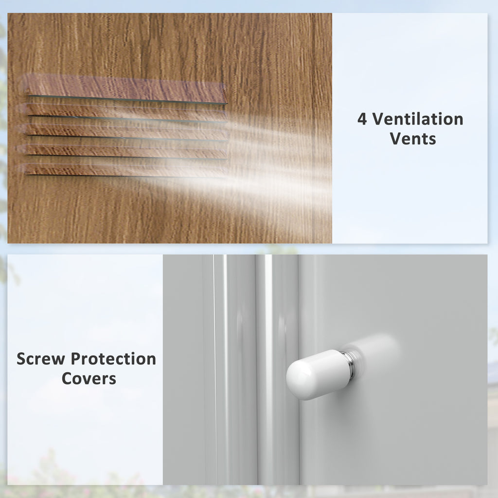 Securely store your garden equipment and outdoor essentials with the 3.6 x 6.3ft metal garden shed. Constructed from galvanised steel, it offers lasting reliability. The double sliding doors on the front provide convenient access, while the four vents promote air circulation to prevent moisture buildup. With a protective weather coating, this metal bike shed is suitable for year-round outdoor use, ensuring your items stay safe and protected.