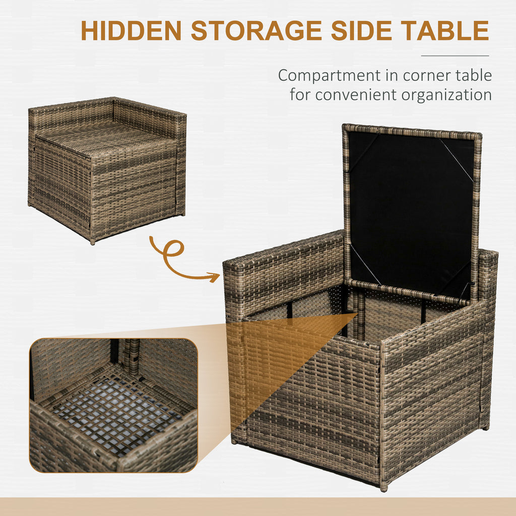 Make the most of the warm weather with this eight-piece outdoor rattan seating set . Its open design is also great for combining two or more sets together in your café, restaurant or business to allow you to cater to larger seating numbers and expanding your outside business revenue. Finished with a hidden storage compartment in the corner table, you’ll never leave the area in a mess, making it ideal for those with busy lifestyles and little time to spare.