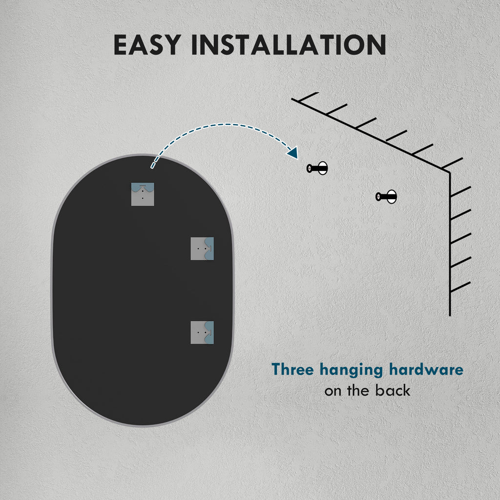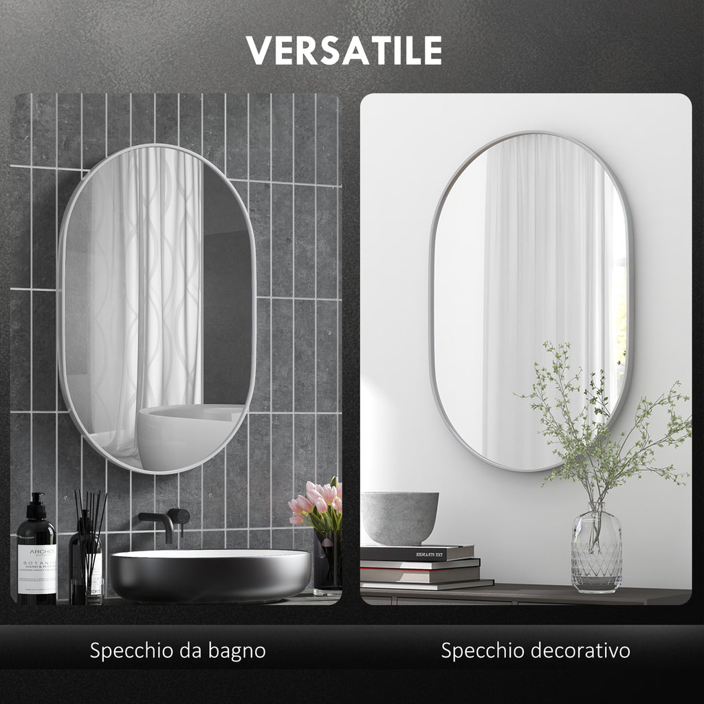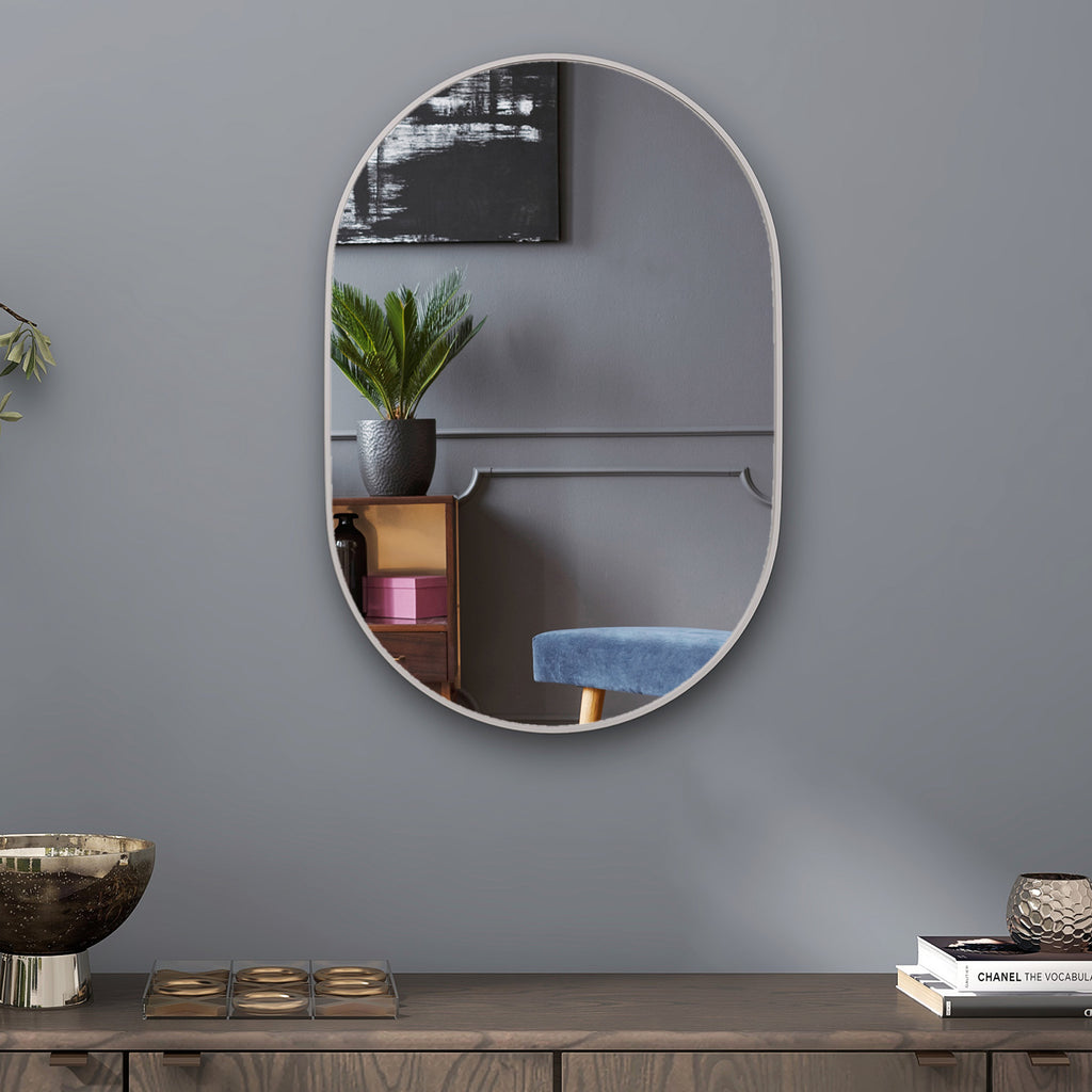 An essential for every morning routine, with this bathroom mirror. Its smooth oval shape makes it versatile - looks great everywhere - set it vertically or horizontally to suit you. The aluminium frame means a protective casing, complete with back metal hooks for hassle-free hanging.